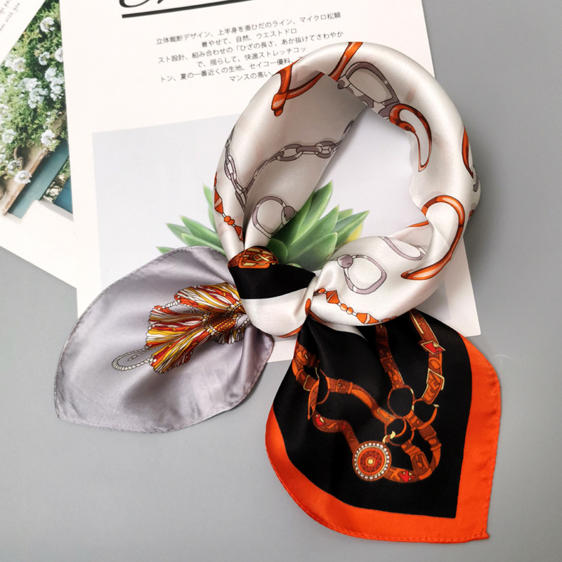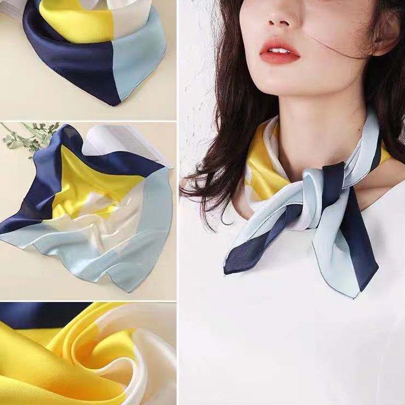 Fashion small square scarf Size: 70*70CM Material: satin Packing: OPP bag Color: multi-color optional Box gauge: 77*62*37CM QTY: 500PCS