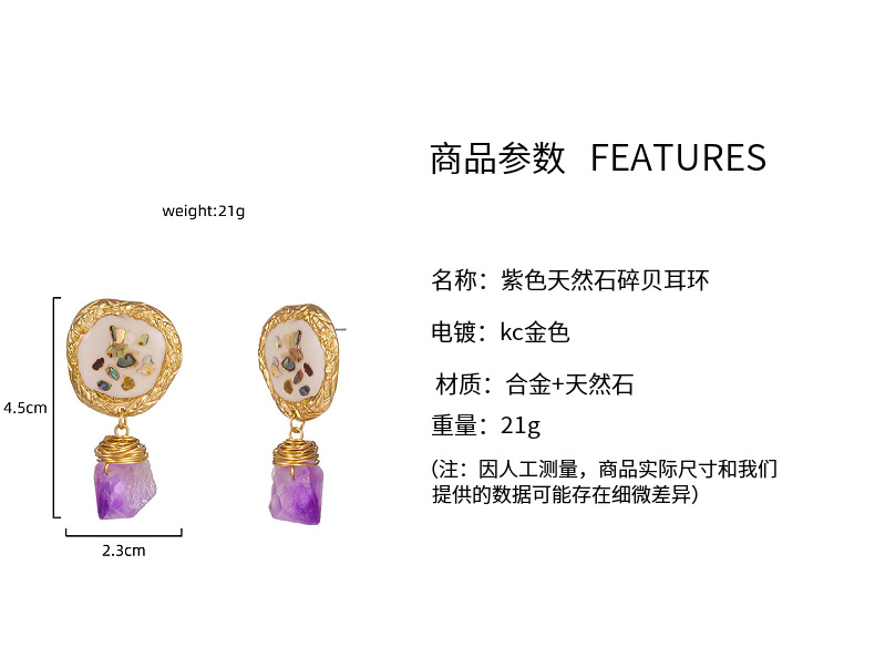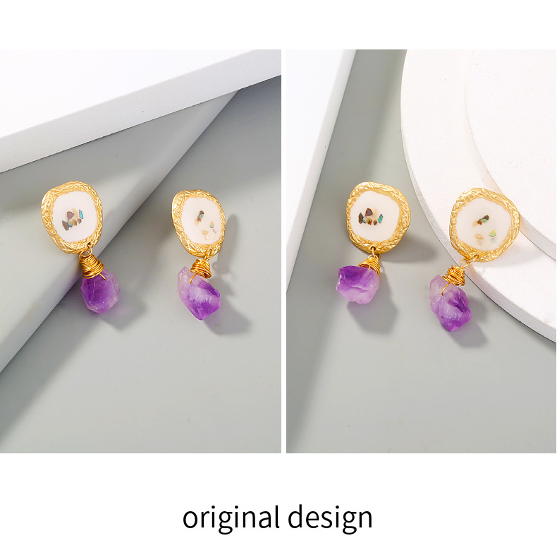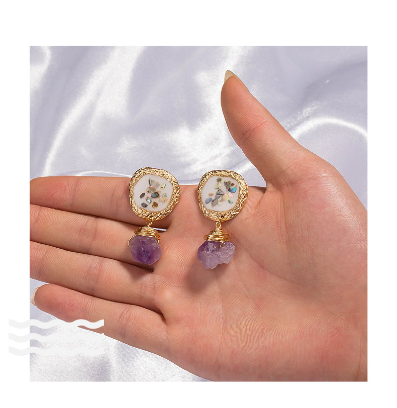 Fashion earrings/color shell earrings Material: alloy + shell + natural stone