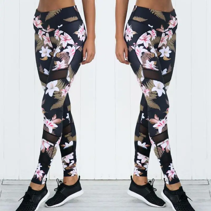 Fashion Printed Women Fitness Leggings Mesh Patchwork Workout Leggins Push Up Casual Slim Pencil Pants High Waist Gym Clothing