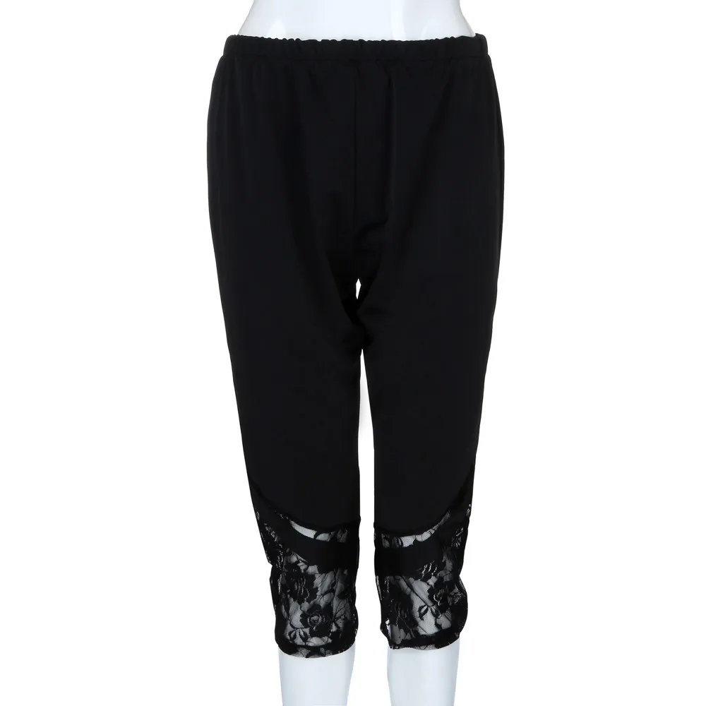 Fashion WomenLace Plus Size Skinny Pants Yoga Sport Pants Leggings Trousers