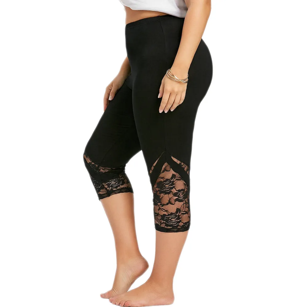 Fitness Legging Plus Size Women Solid Lace Patchwork Hollow Leggin High Waist Workout Exercise Skinny Panties Women Clothes