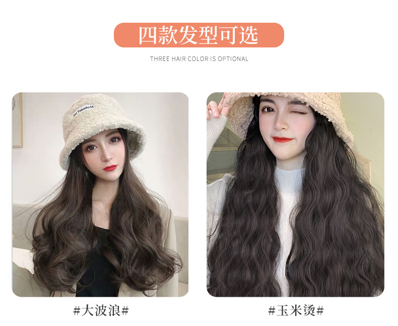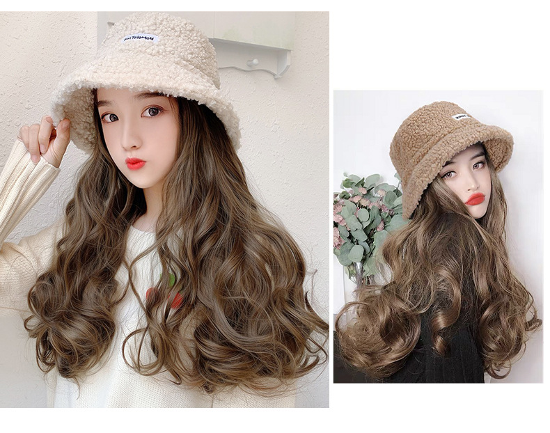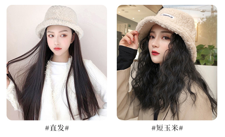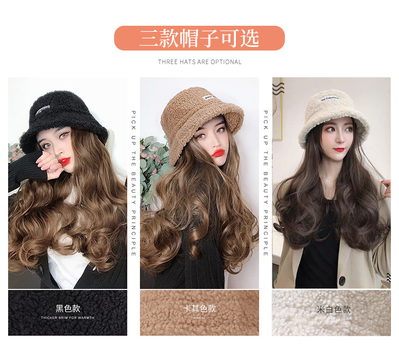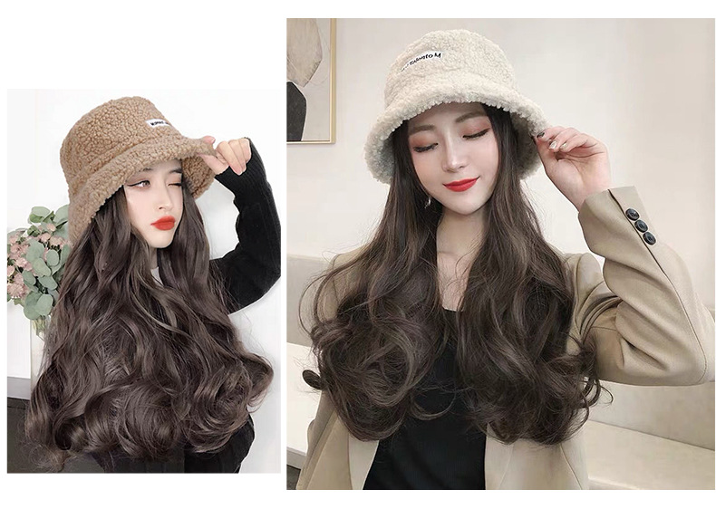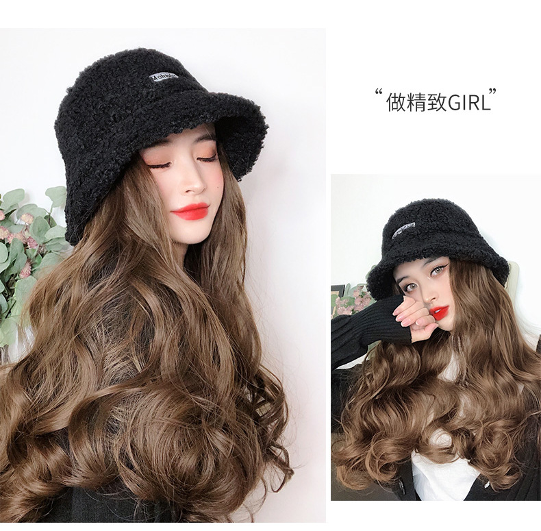 Hooded wig long hair women wholesale lamb hair fisherman hat wig set wig one autumn and winter water ripple wig hat