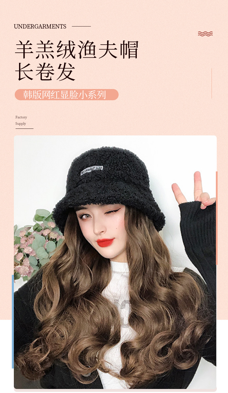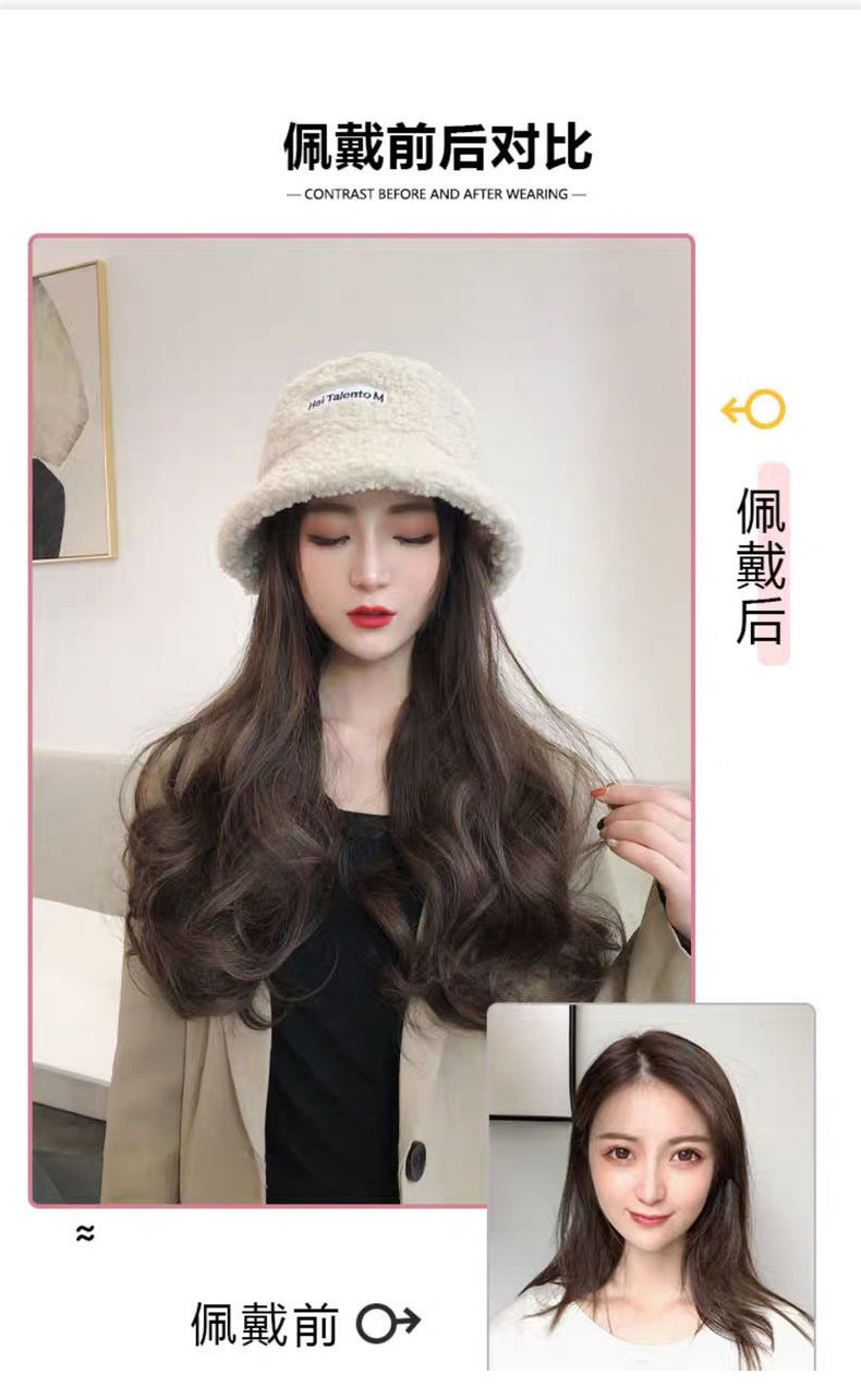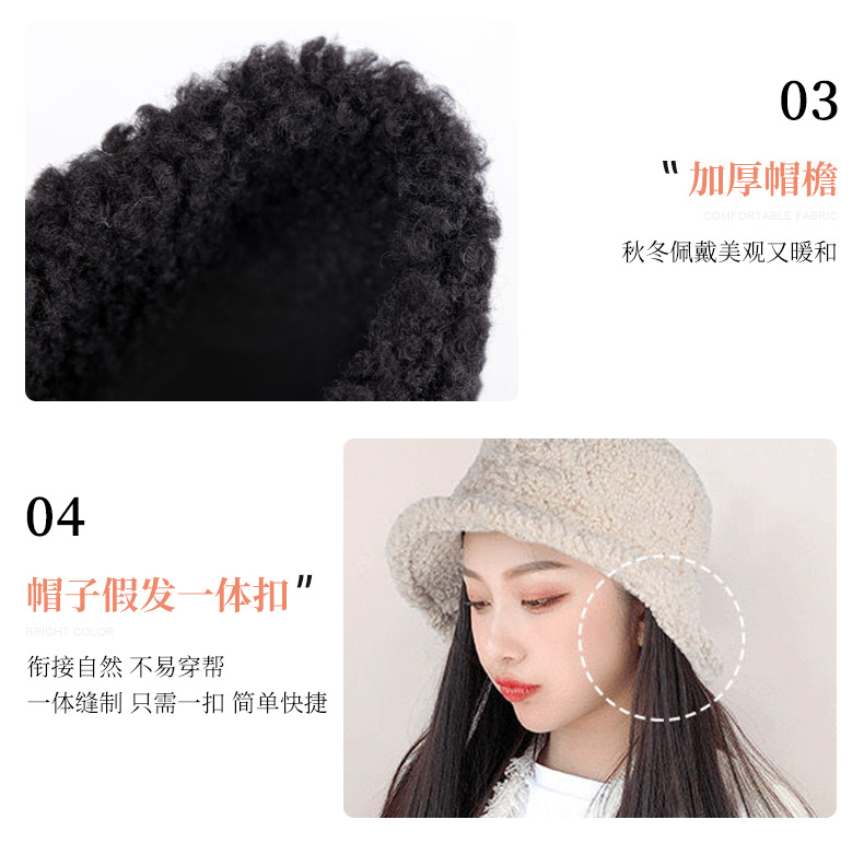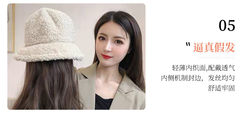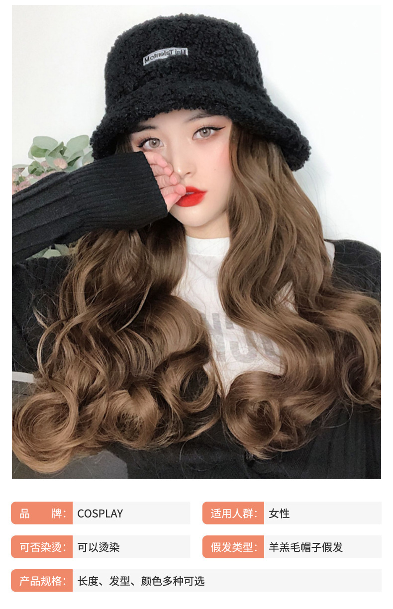 Hooded wig long hair women wholesale lamb hair fisherman hat wig set wig one autumn and winter water ripple wig hat
