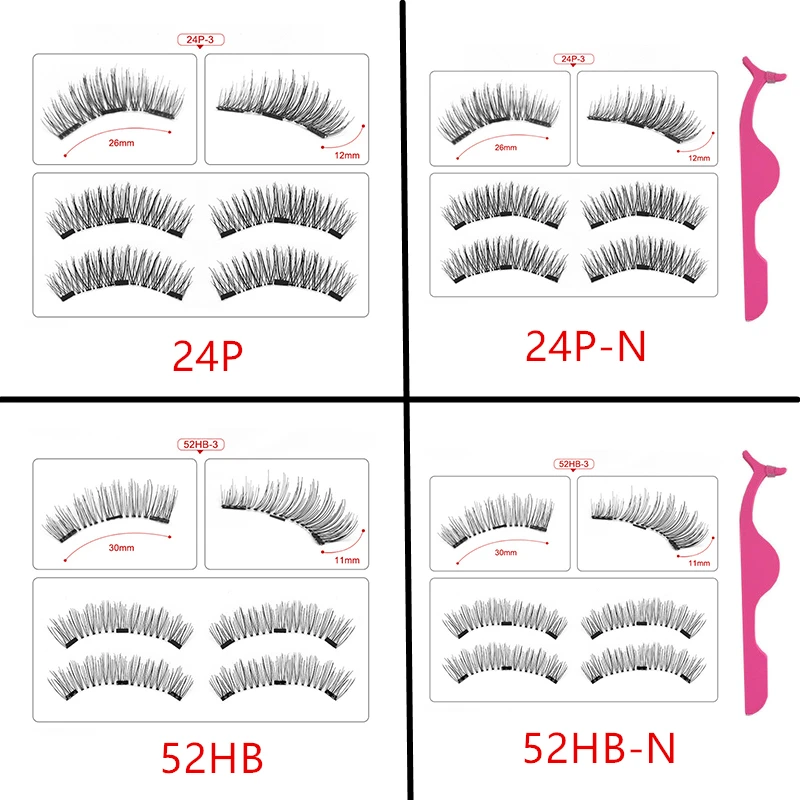 Magnetic eyelashes with 3 magnets handmade 3D/6D magnetic lashes natural false eyelashes magnet lashes with gift box-24P-3