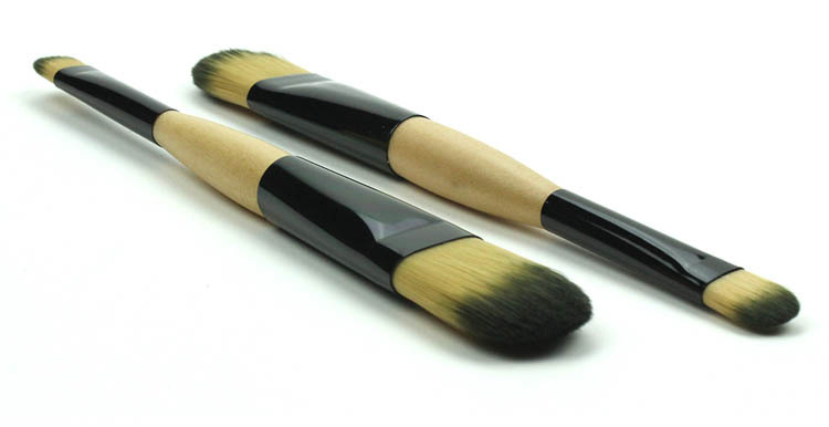 Double-ended makeup brush Size: 17.2cm*3CM Material: wooden handle + man-made fiber Packing: OPP bag Box gauge: 42*39*30CM Packing: 1500pcs