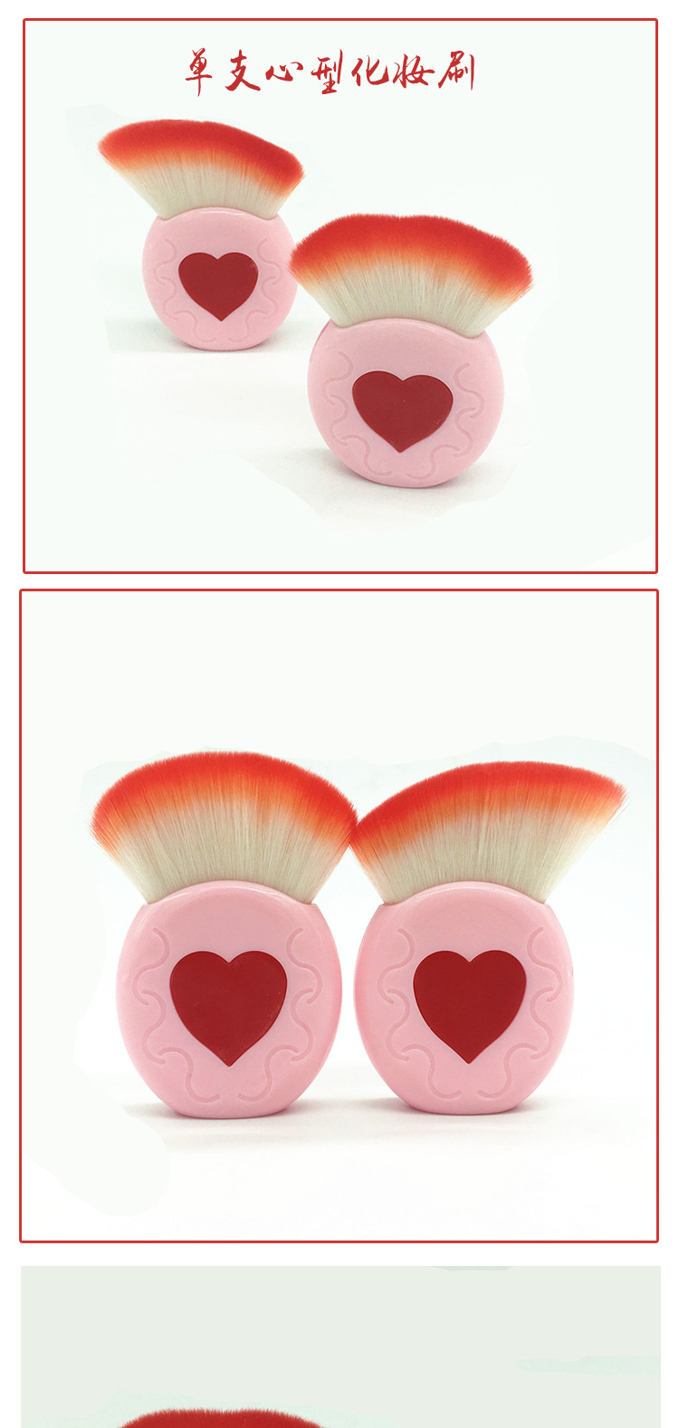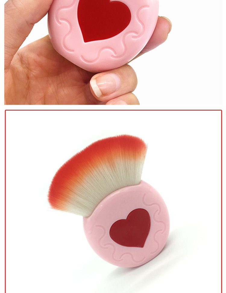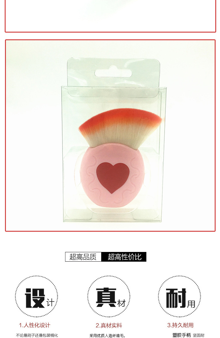 Single heart-shaped pink blush brush Size: 8*3CM Material: plastic/chemical fiber Packing: PVC box Color: picture color Packing: 300pcs