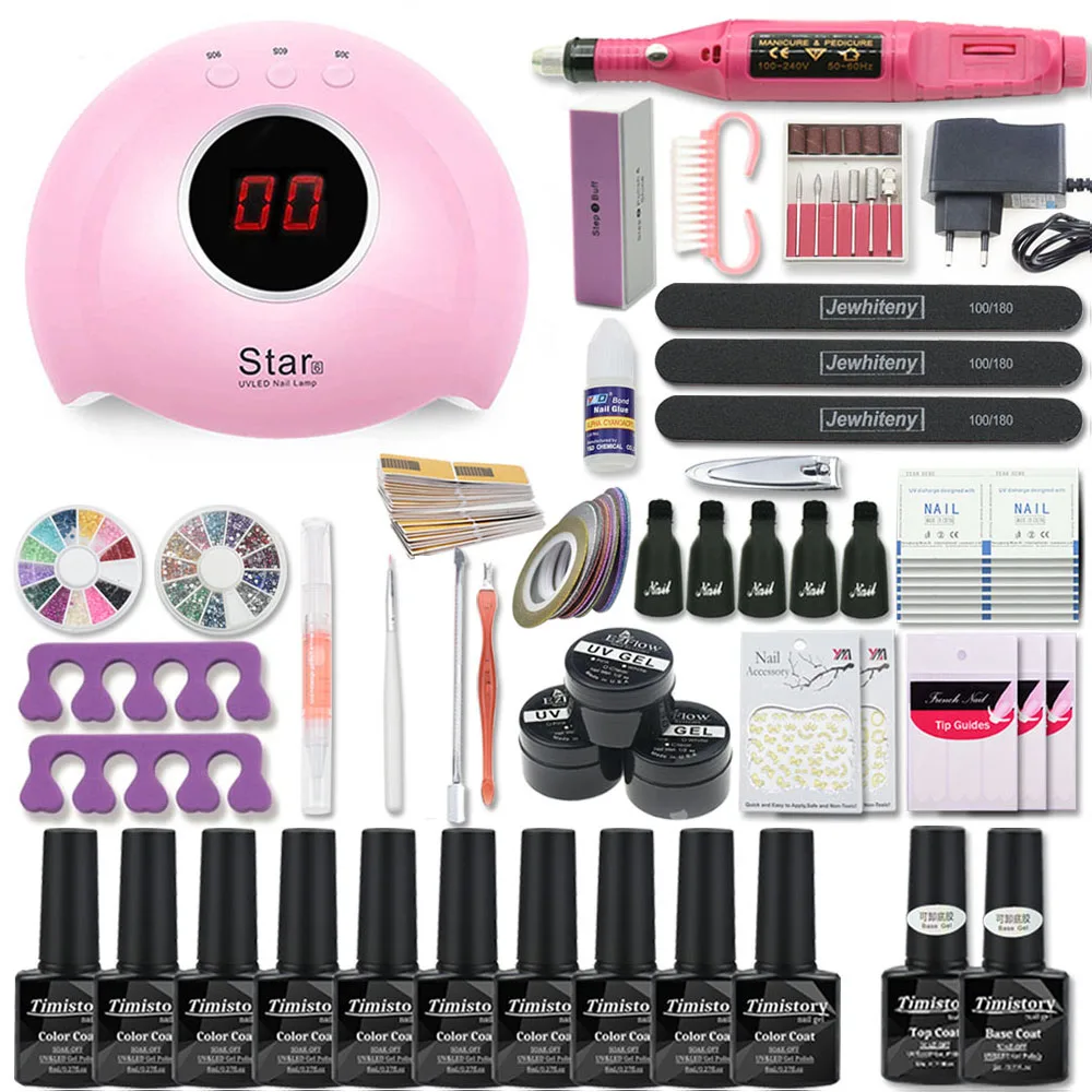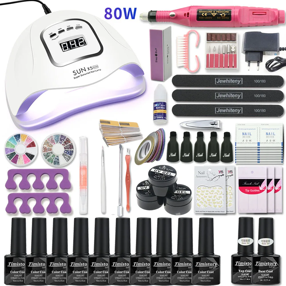 Manicure Set For Nail Kit 80W/54W/36W UV Lamp 10 Color Gel Varnish Set Nail Drill Machine Kit Nail File Tool Nail Extension Set.