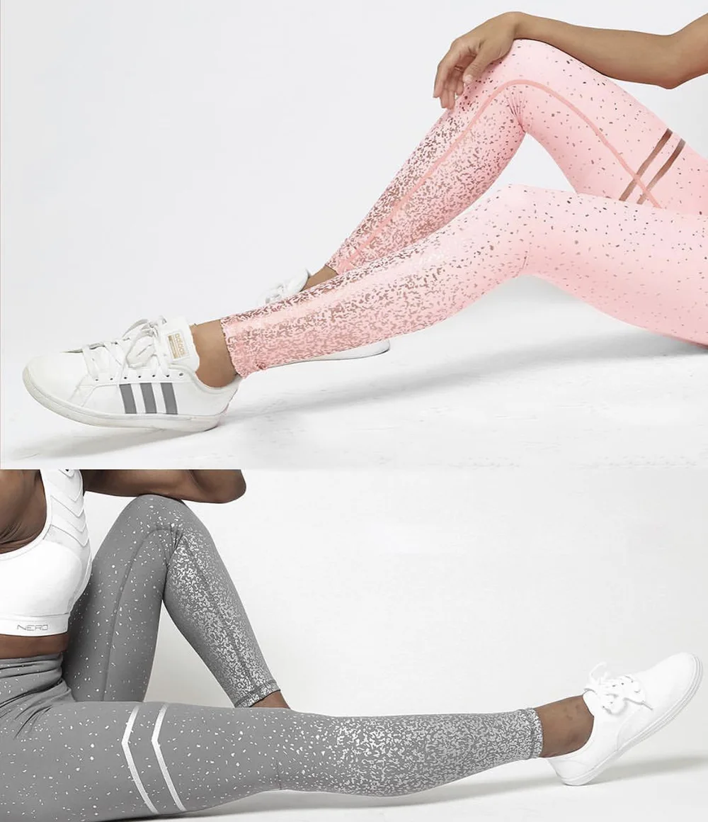 Maryigean Women Gold Print High Waist Leggings No Transparent Exercise Fitness Patchwork Push Up Female Pants