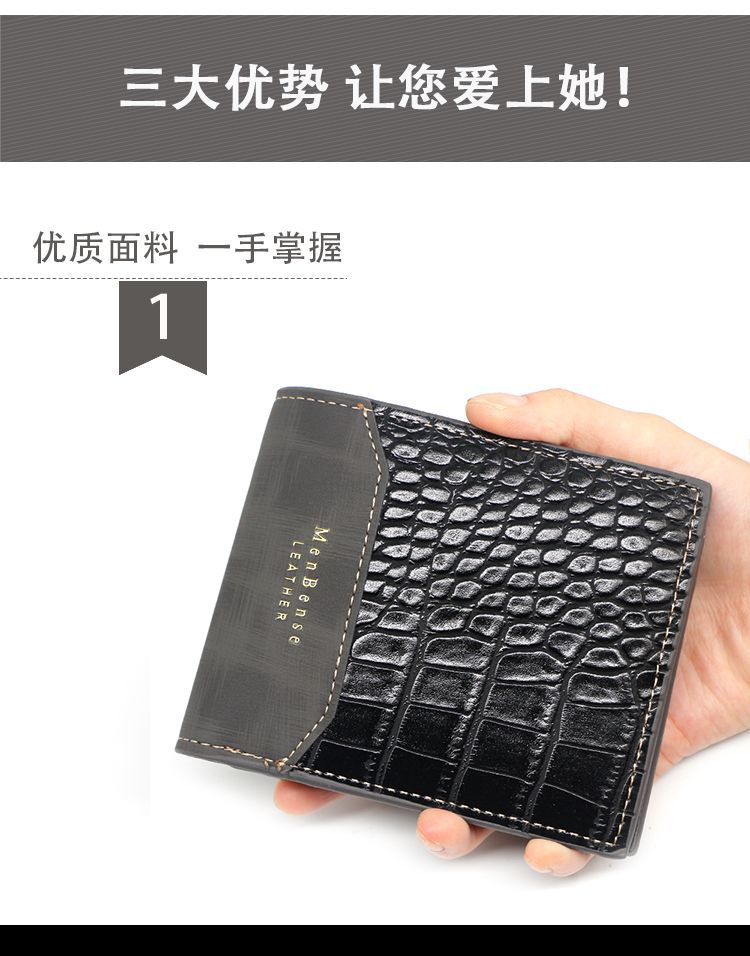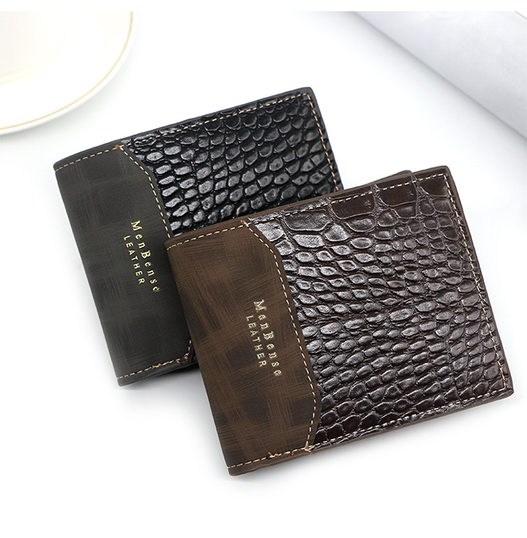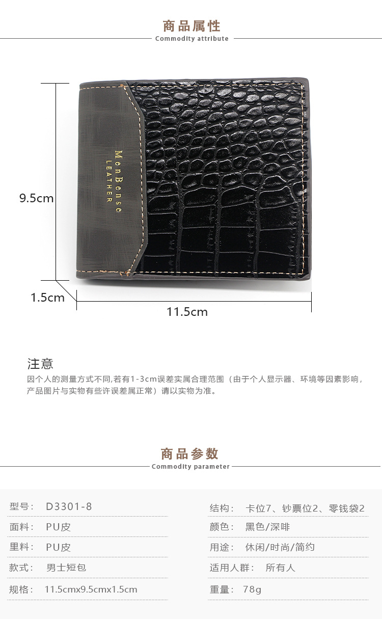 Men’s wallet casual two-fold short Size: 11.8*9.7*2CM Material: PU leather Packing: opp bag Color: black, brown Carton size: 50*40*55cm QTY: 500PCS