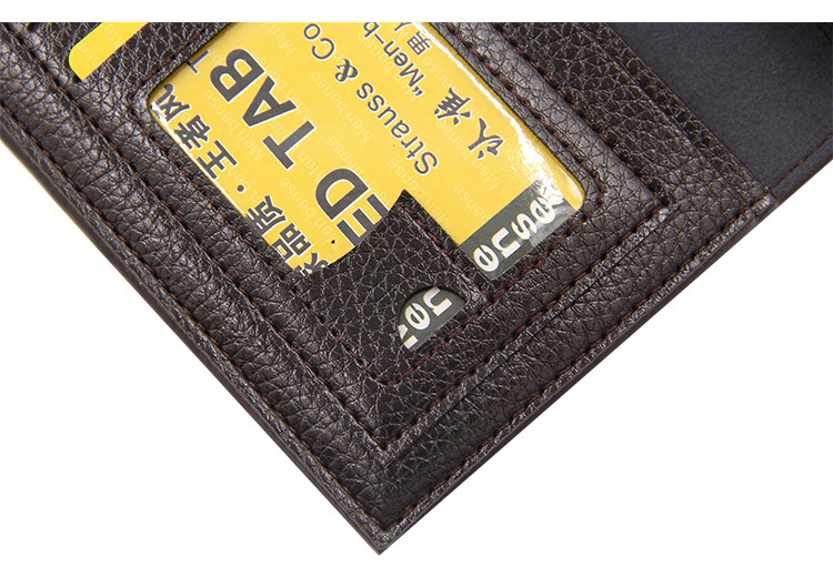 Men’s short wallet Size: 11*9.5*0.6CM Material: PU leather Packing: opp bag Color: black, brown, blue, gray Carton size: 50*40*55cm QTY: 500PCS
