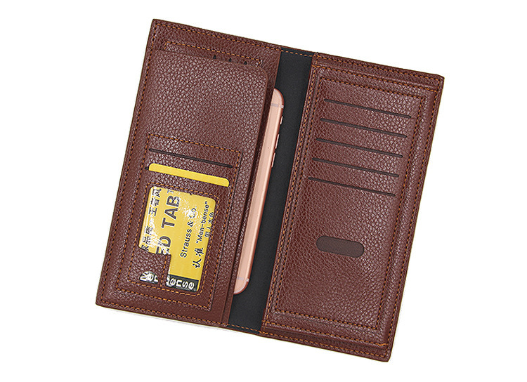 Men’s long wallet soft leather Size: 22*10.5*1CM Material: PU leather Packing: opp bag Color: coffee, black, brown Carton size: 50*40*55cm QTY: 500PCS