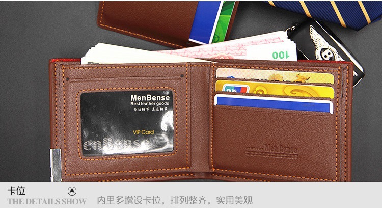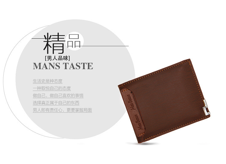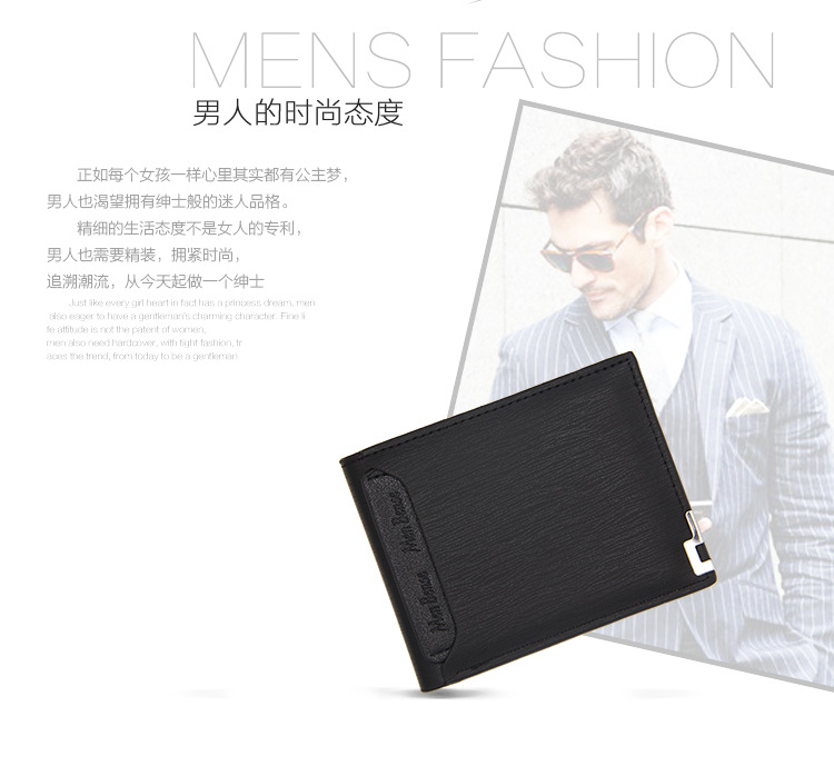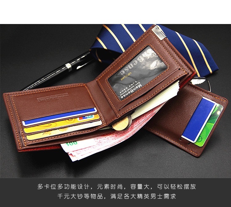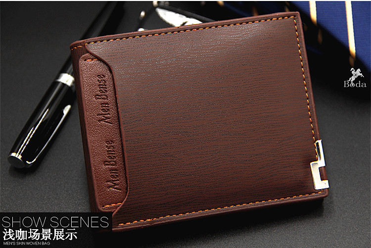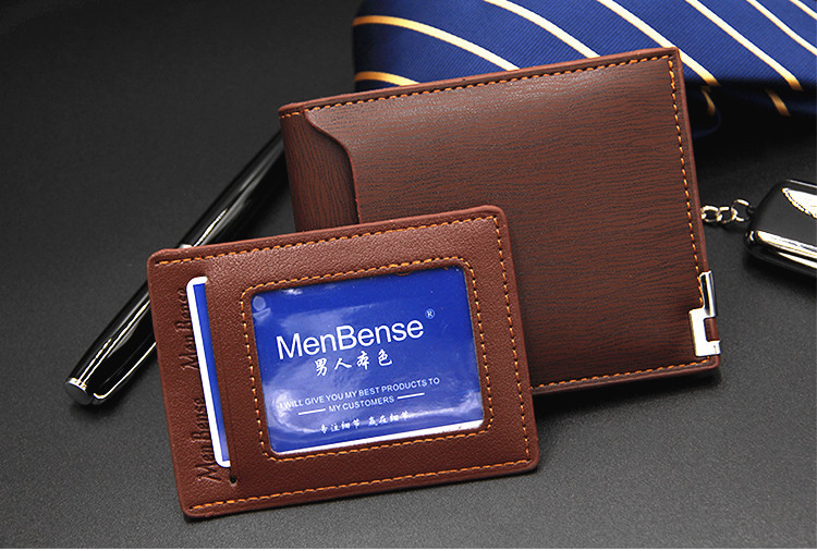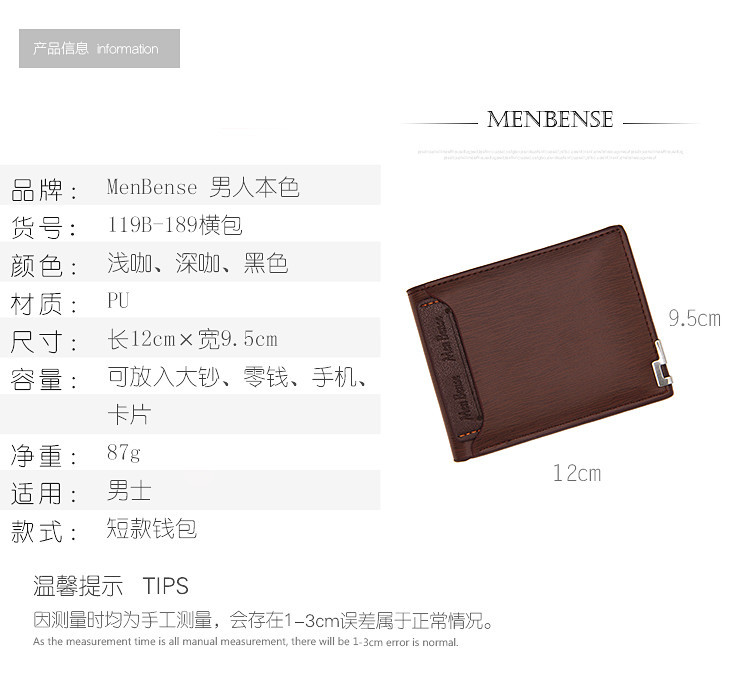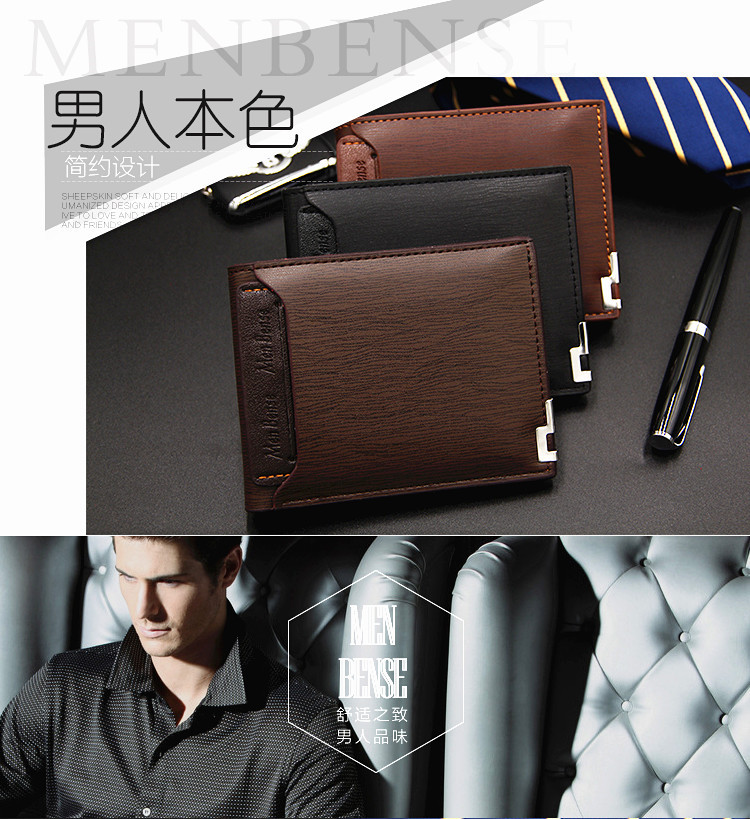 Men’s short wallet Size: 12*9.5CM Material: PU leather Packing: opp bag Color: multi-color optional Carton size: 41*30*30CM QTY: 150PCS