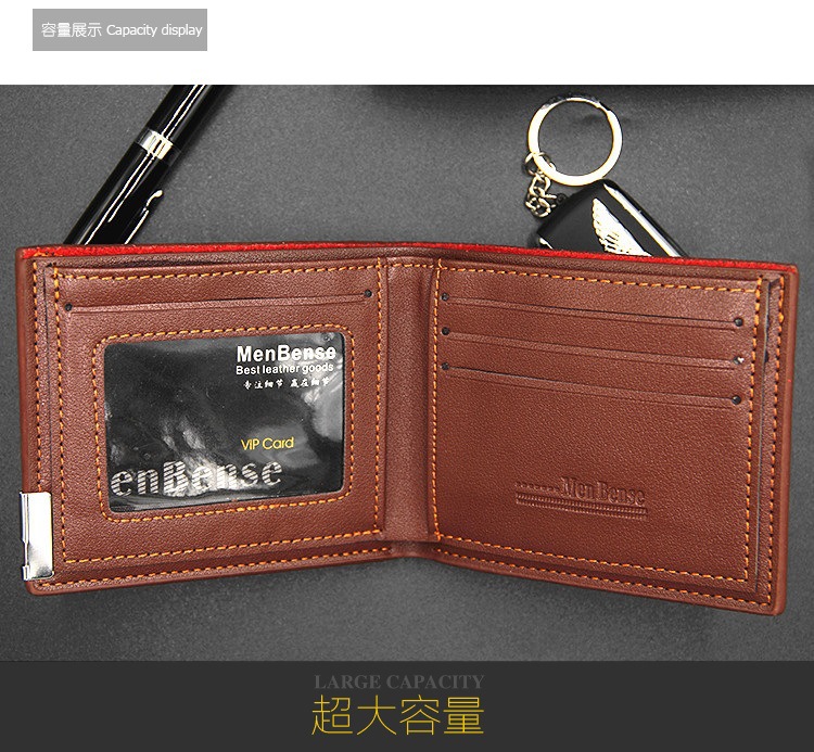 Fashion men’s wallet short Size: 12*9.8*1.5CM Material: PU leather Packing: opp bag Color: multi-color optional Carton size: 41*30*30CM QTY: 250PCS