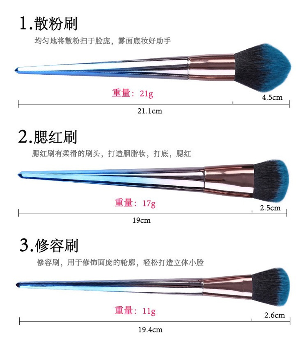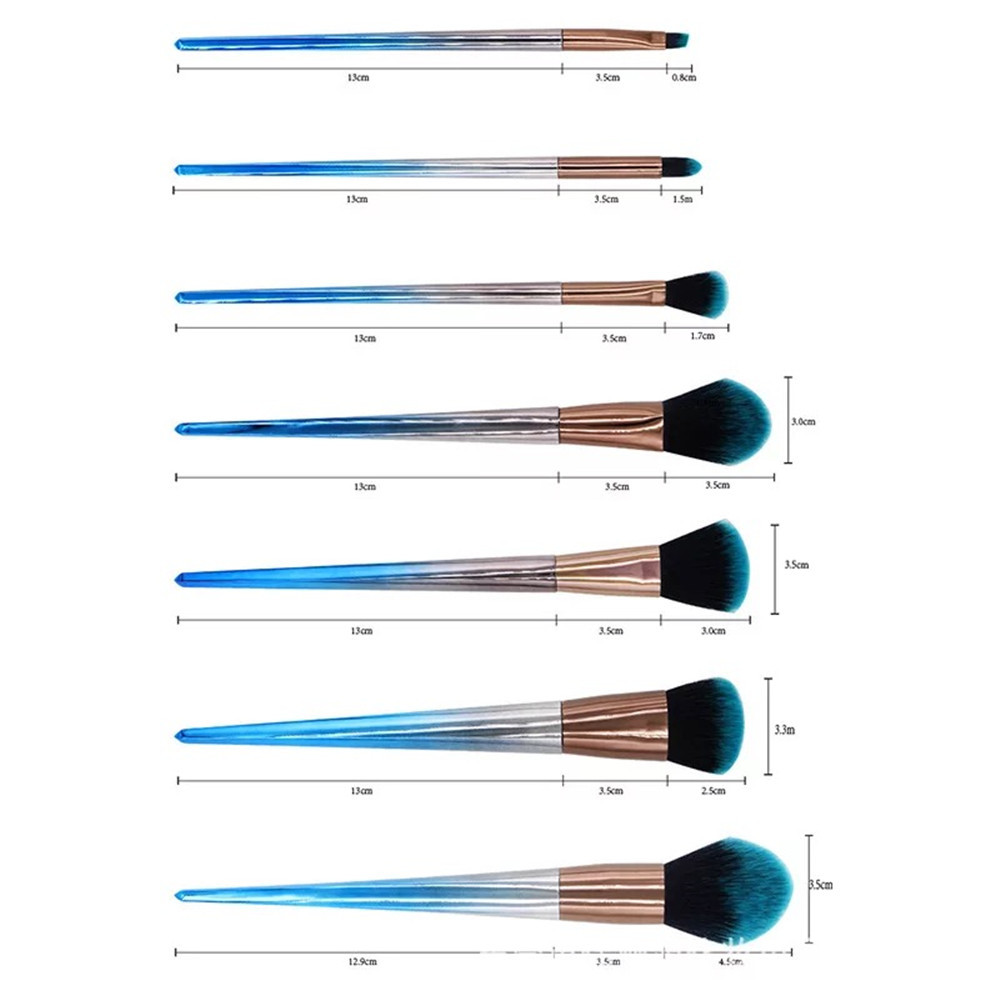 Set of 7 makeup brushes with rhombus handles