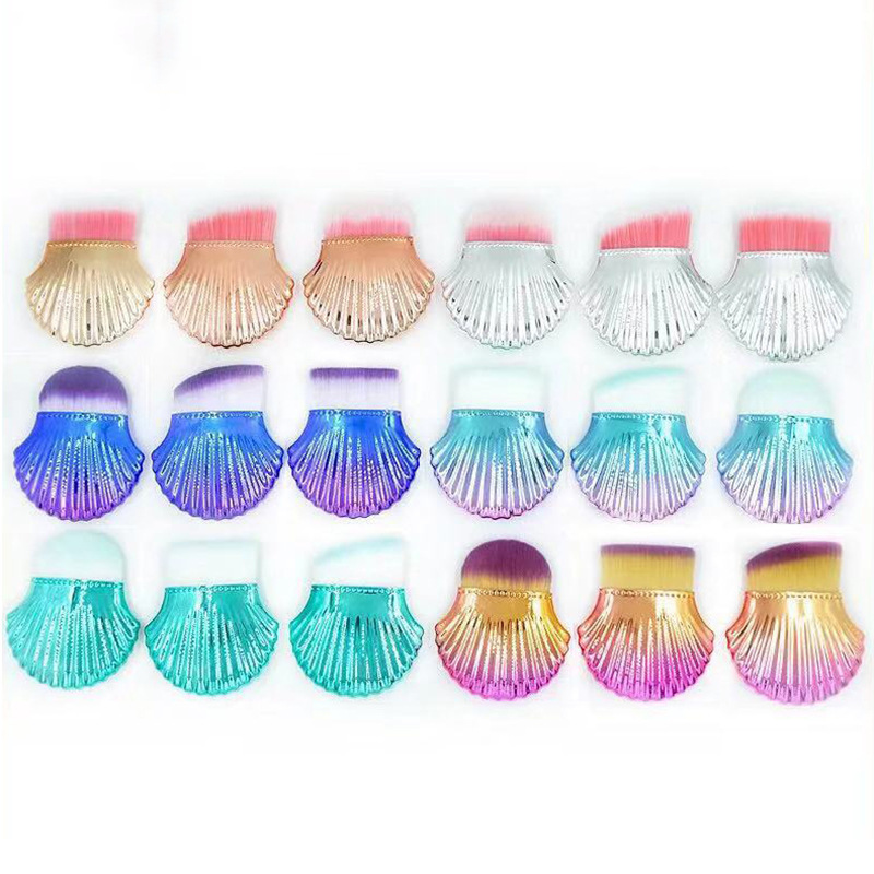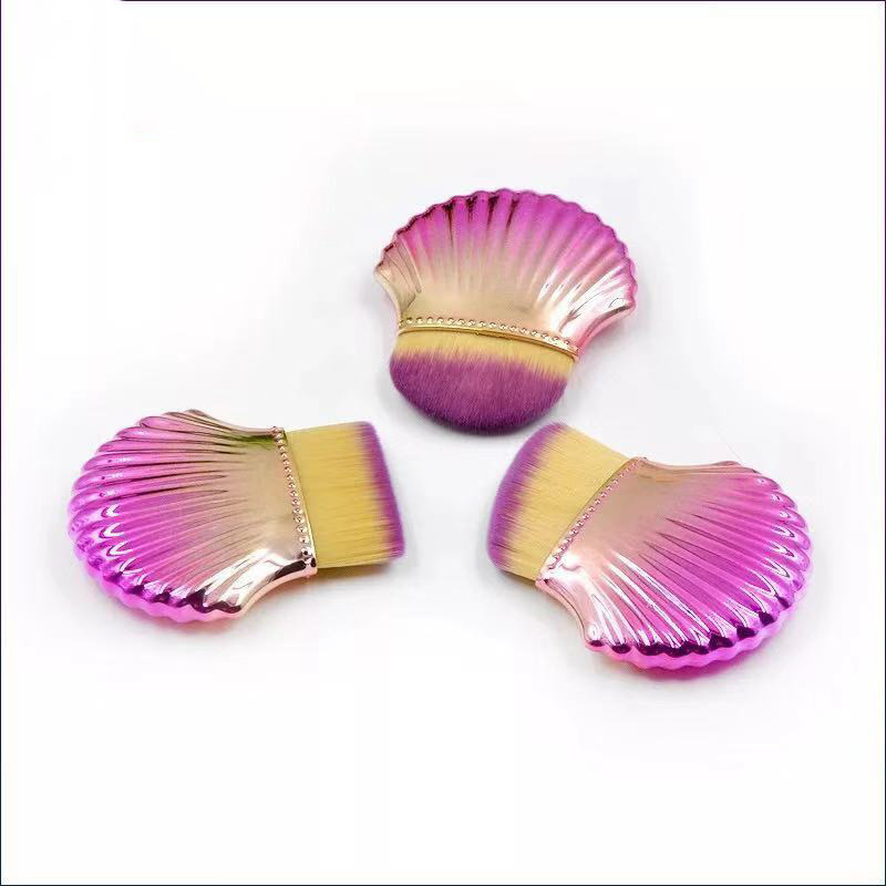 Shell foundation brush makeup brush Size: 8*3CM Material: plastic handle + man-made fiber Packing: OPP bag Color: mixed color