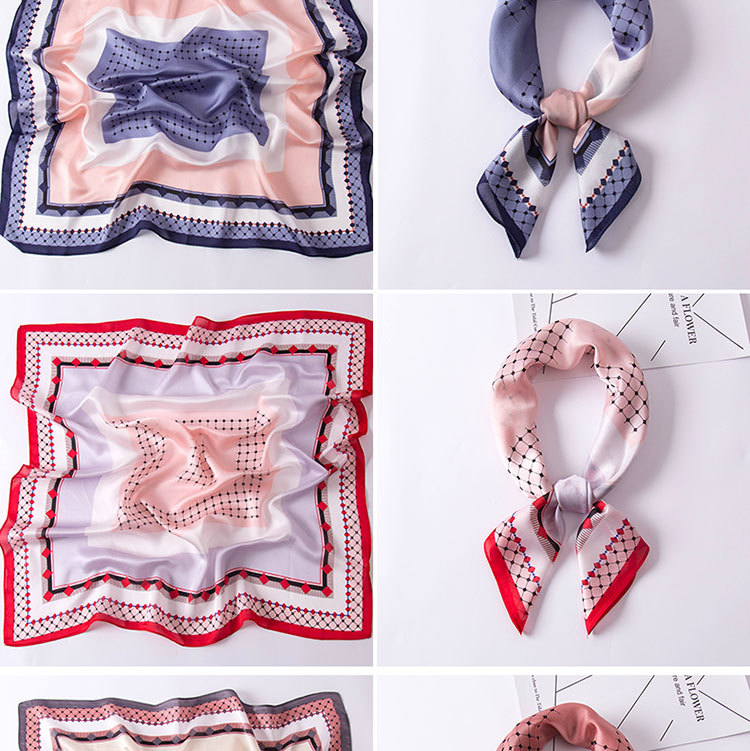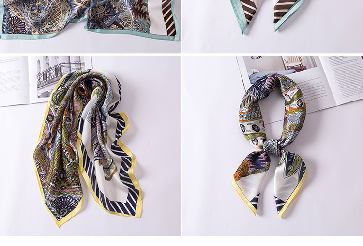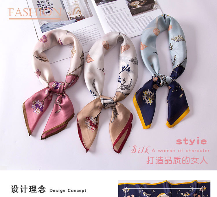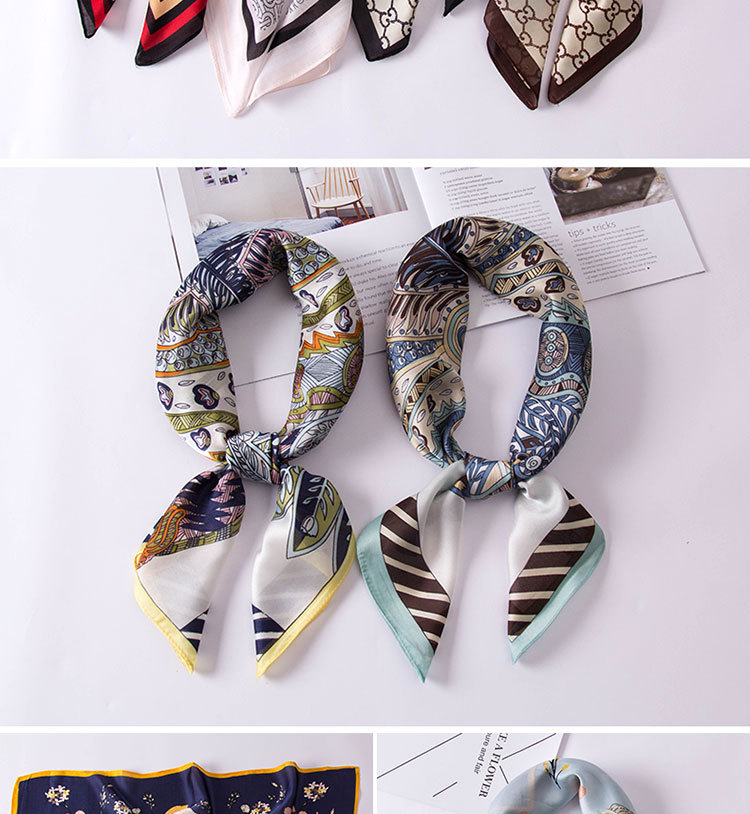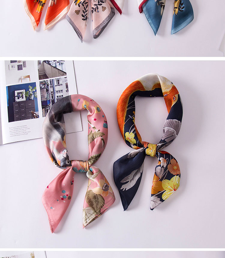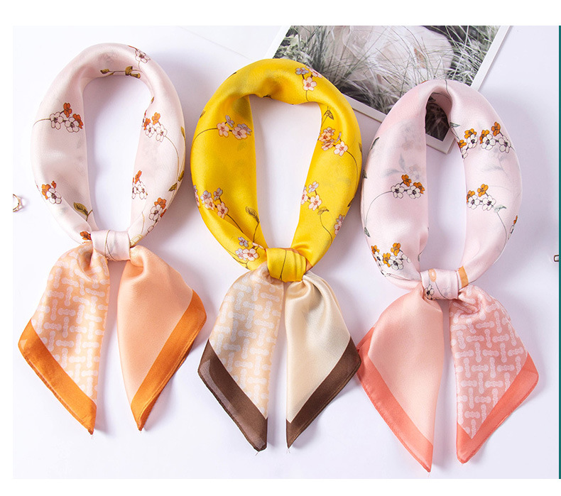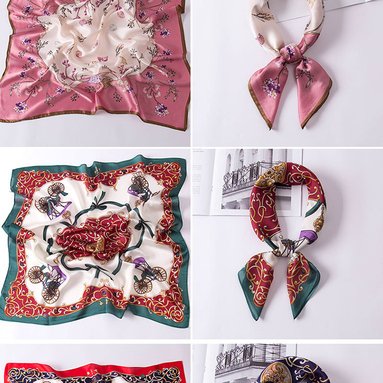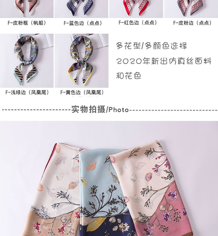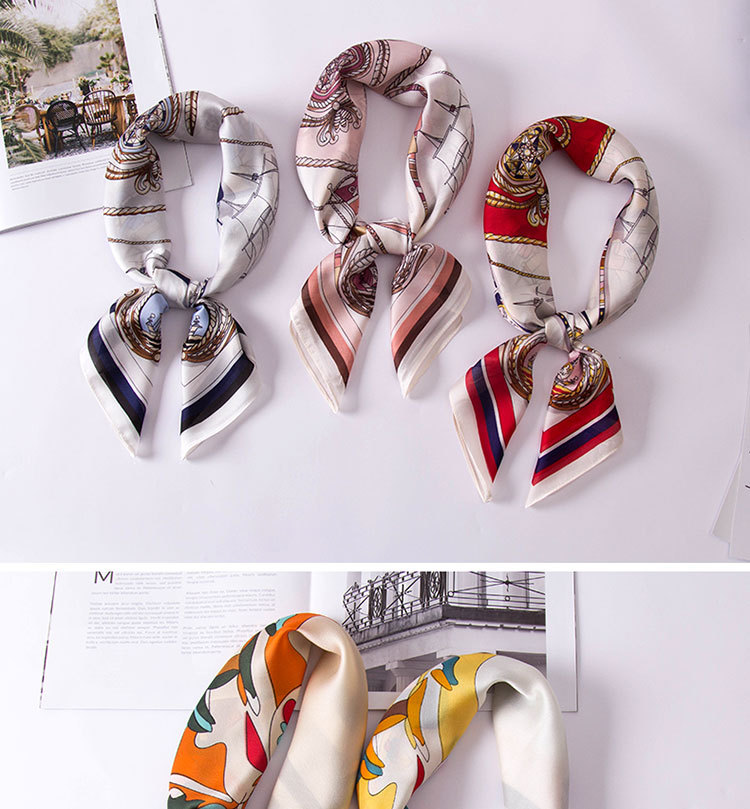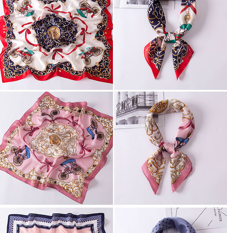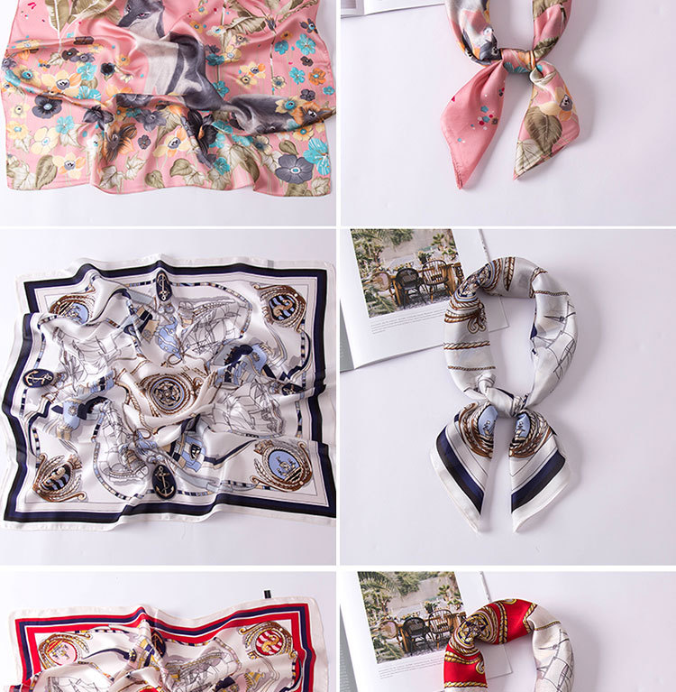Printed scarf Size: 70*70CM Gram weight: 50g Material: artificial silk Packing: OPP bag Color: mixed color Box gauge: 77*62*37CM QTY: 500PCS