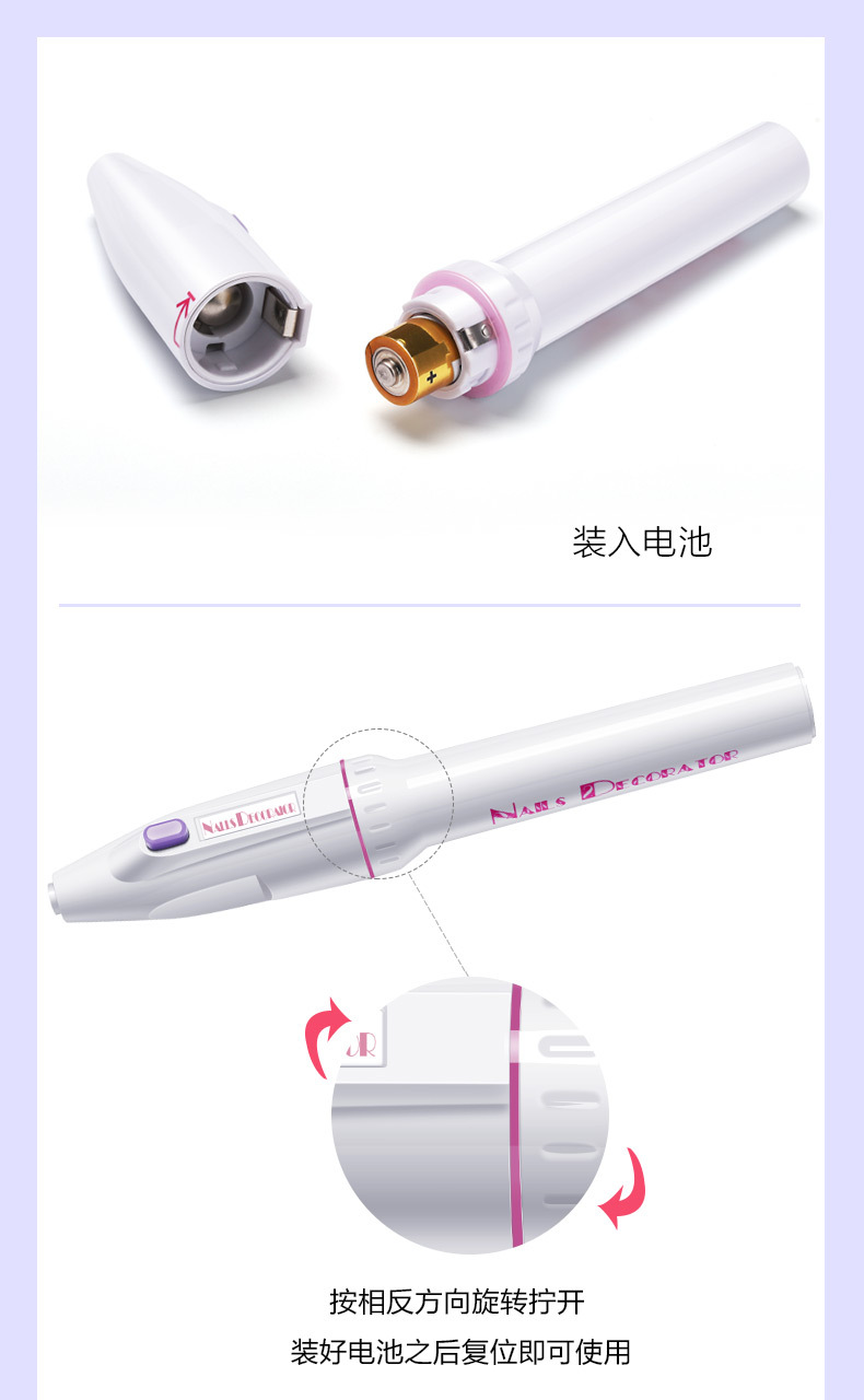 Portable polisher pen nail polisher Size: Length 16CM Power supply: use 2 AA batteries Material: stainless steel + ABS Packing: storage bag + opp bag