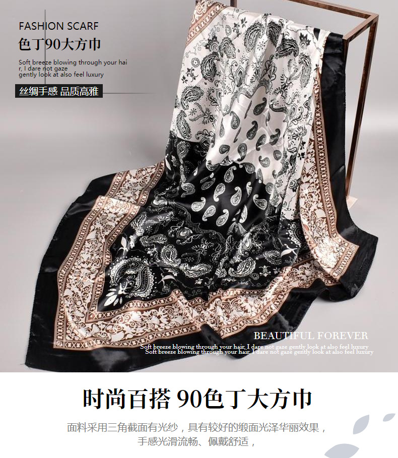 New two-tone cashew scarf Size: 90*90CM Material: Satin Gram weight: 52g Packing: OPP bag Color: four colors are available