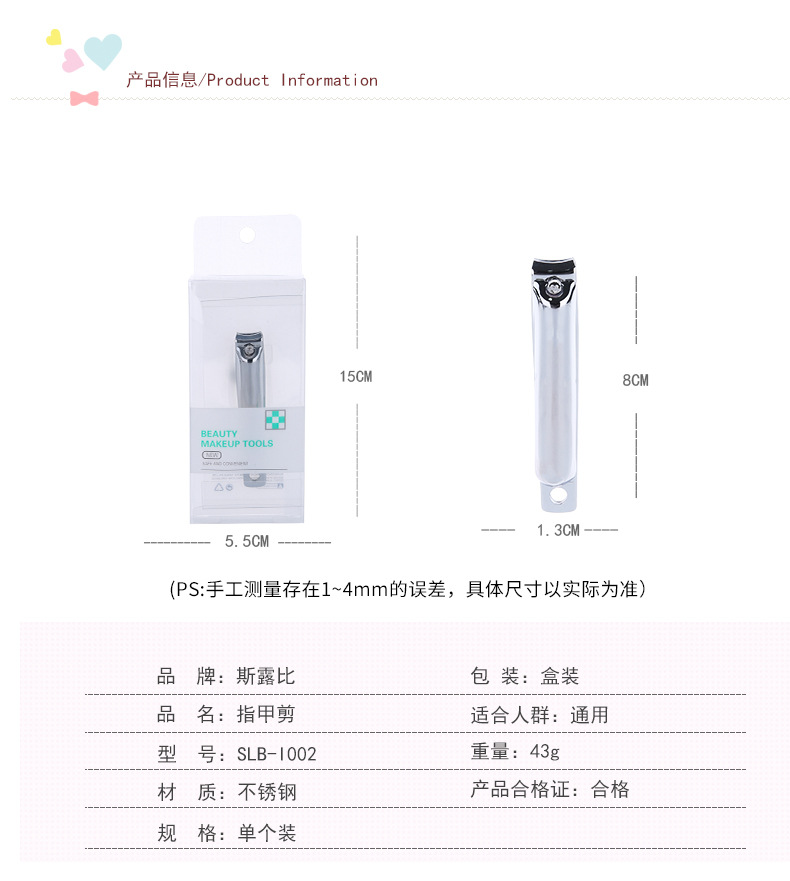 Stainless steel nail scissors Size: 9*1.3CM (43g) Material: Stainless steel Packing: boxed