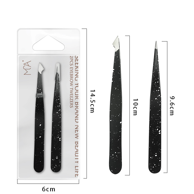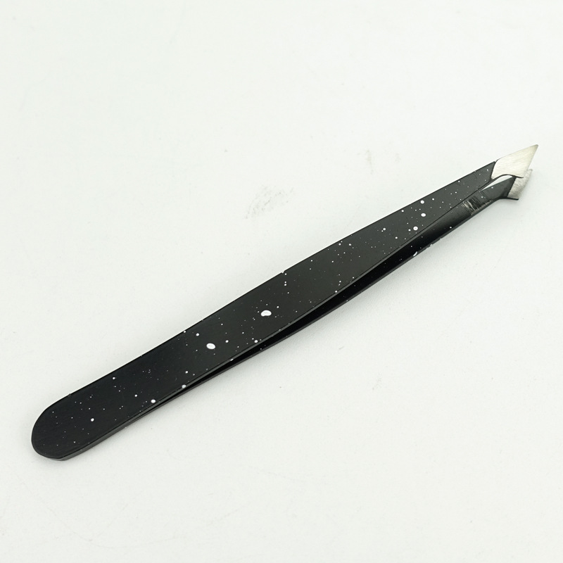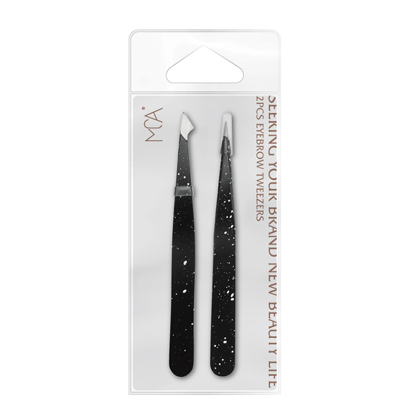 Two-piece stainless steel splash ink eyebrow clip Size: 10CM 9.6CM Material: Stainless steel Packing: PVC bag Box gauge: 30*23.5*22CM QTY: 250PCS