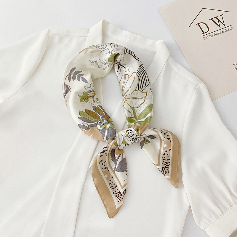 Summer new satin small silk scarf Japan and South Korea sweet simulation silk scarf white collar fashion professional silk scarf