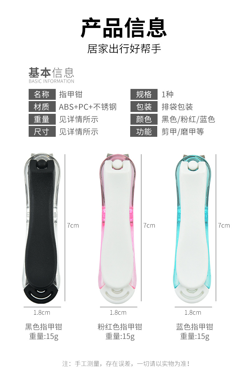Stainless steel nail scissors Size: 7*1.8CM Material: stainless steel+PC+ABS Packing: OPP bag Color: Diamond Black, Fluorescent Blue, Fluorescent Powder