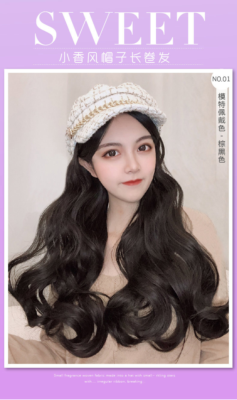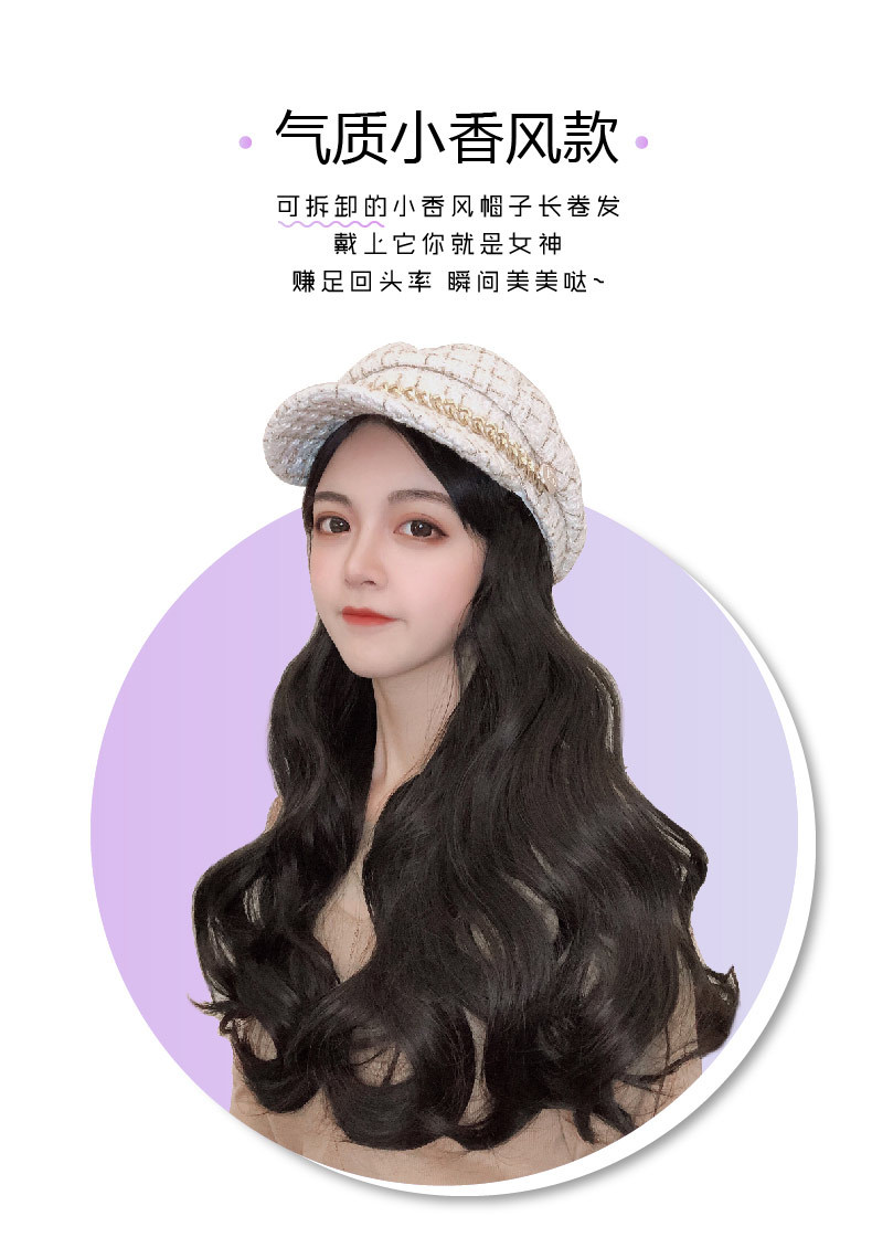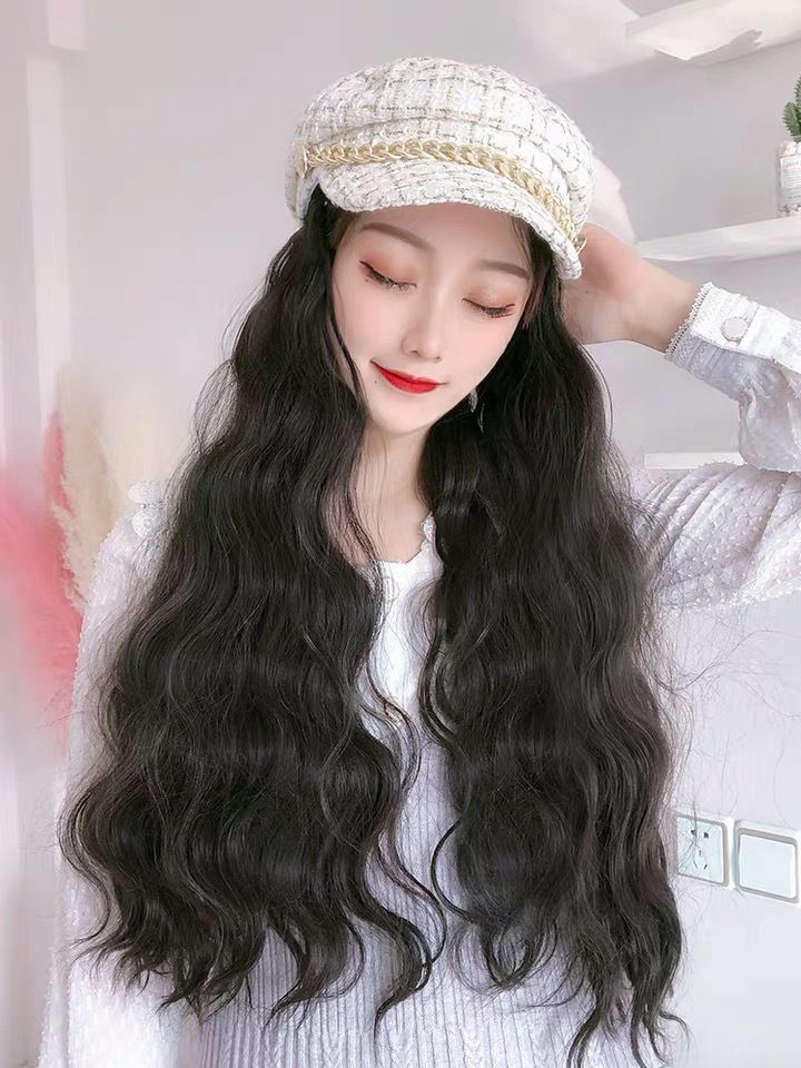 Winter big wave long curly hair wig hat one small Xiangfeng net red Ruili cap full head cover wig