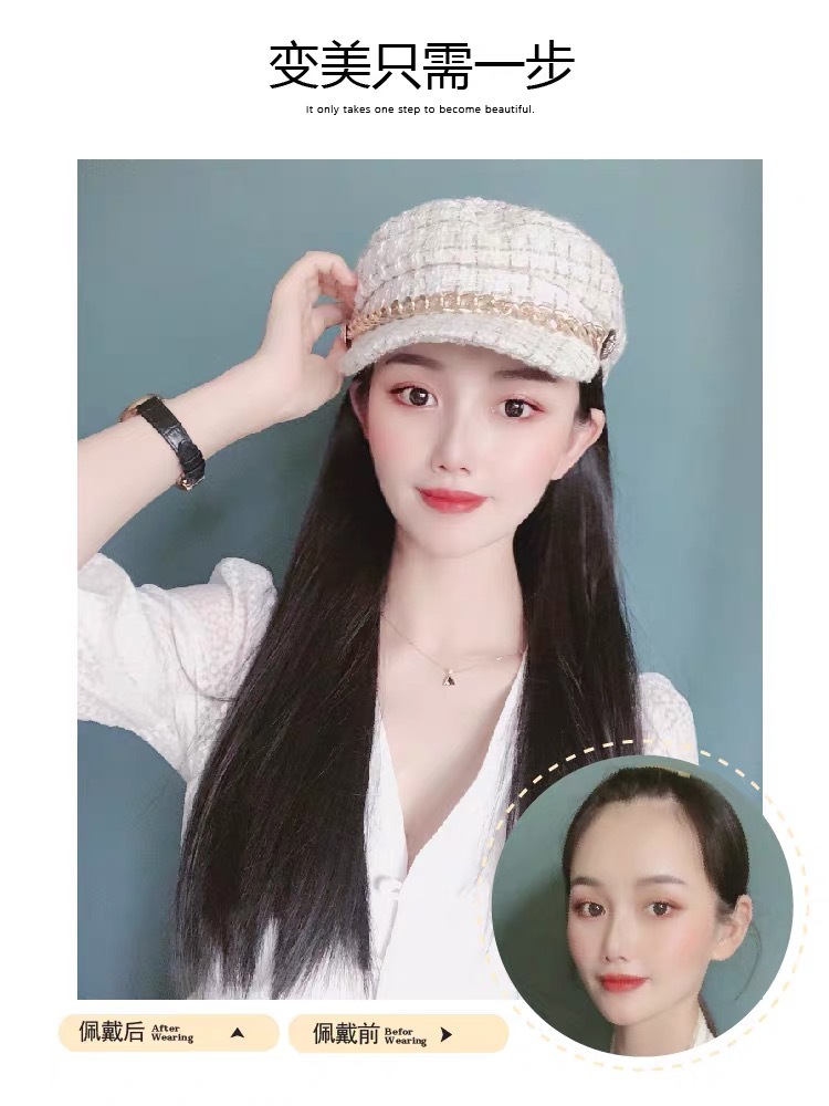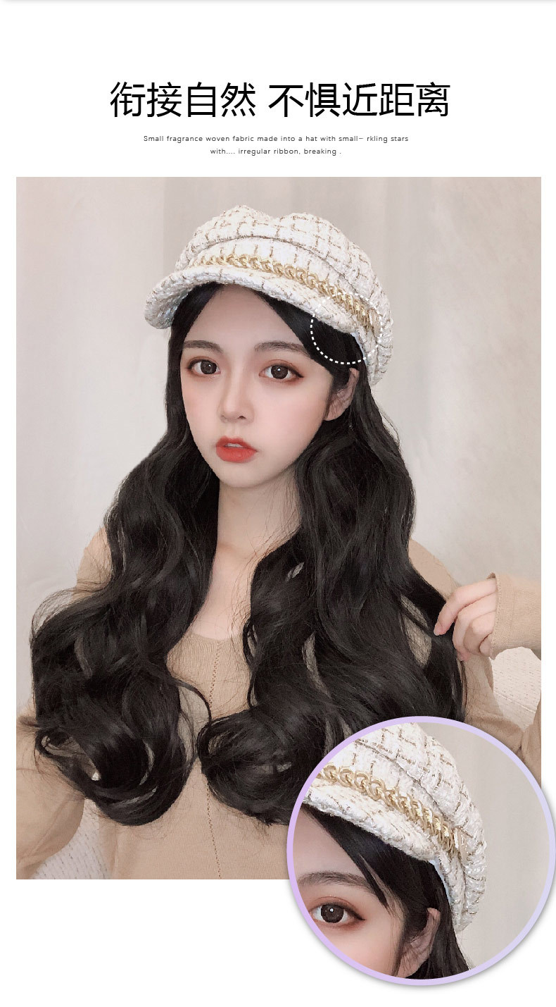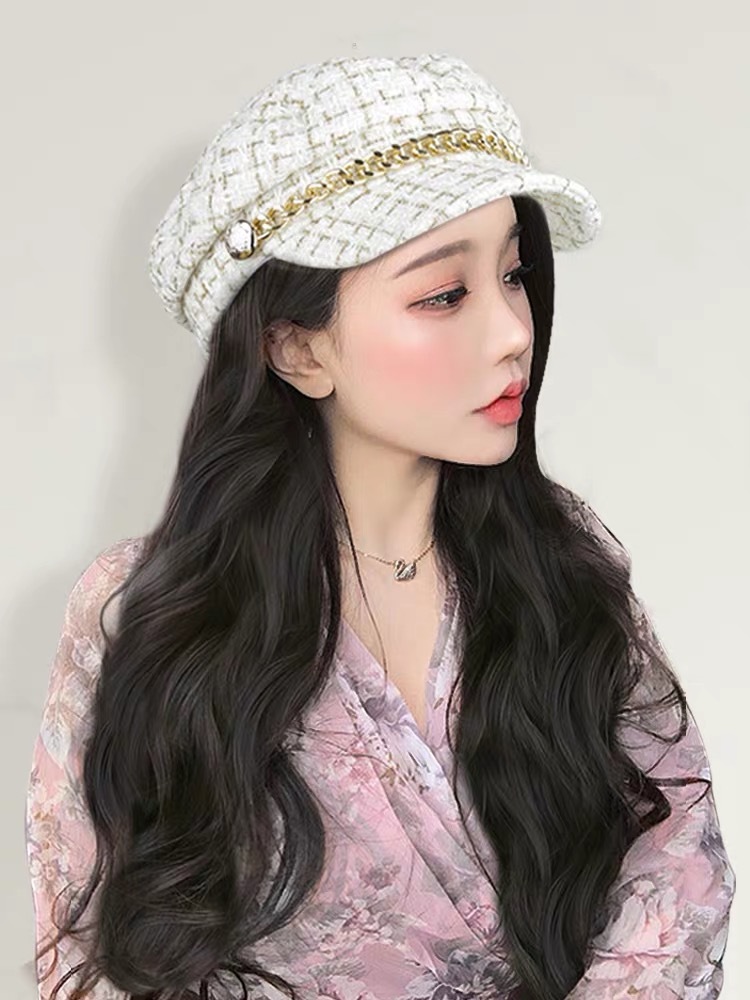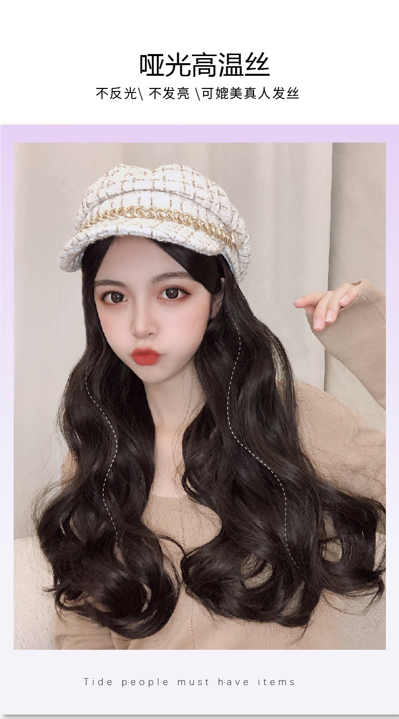 Winter big wave long curly hair wig hat one small Xiangfeng net red Ruili cap full head cover wig