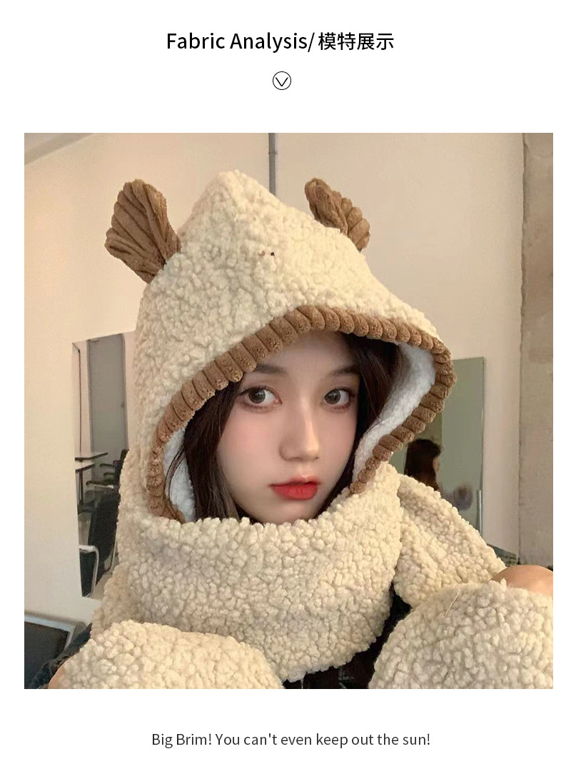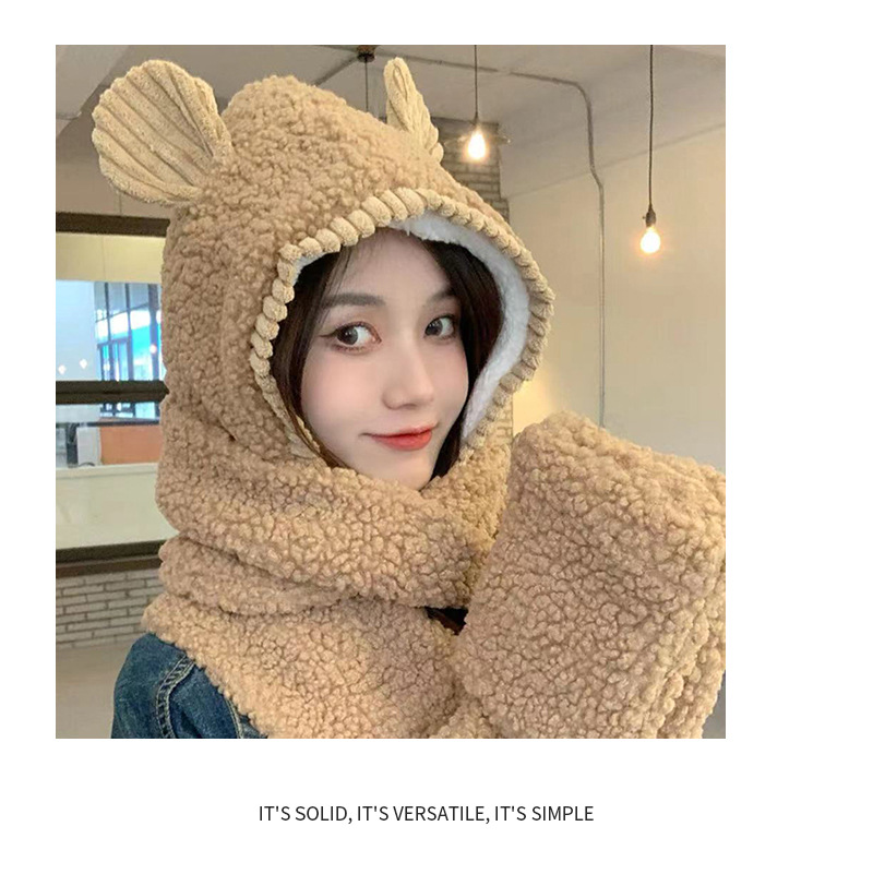 All-match hat, scarf and gloves in one Size: all size Material: lamb wool Packing: OPP bag Color: mixed color Box gauge: 70 *45 *50CM QTY: 60PCS