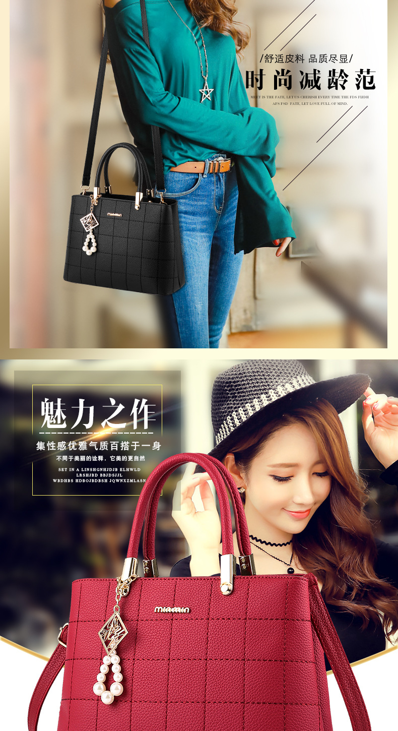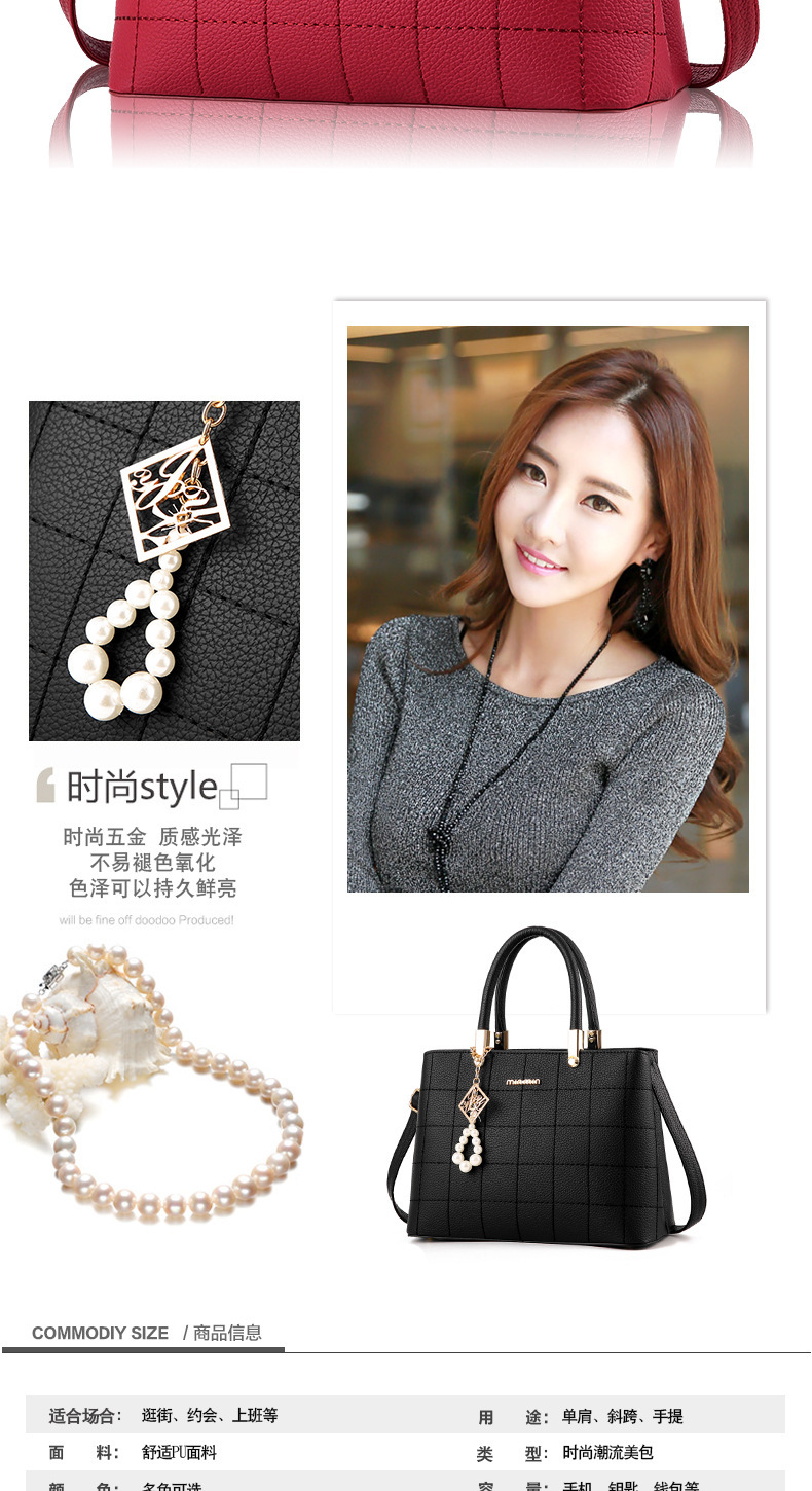 Embroidery check handbag