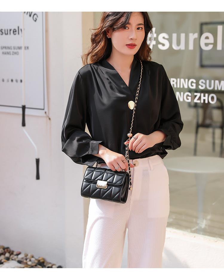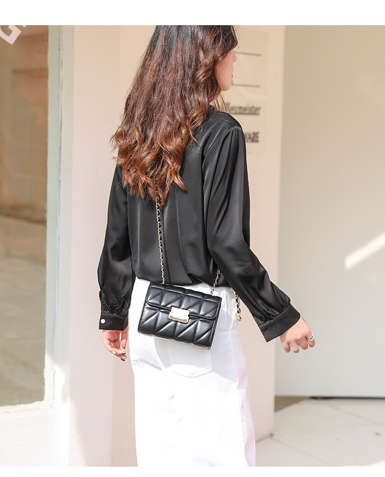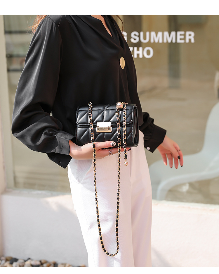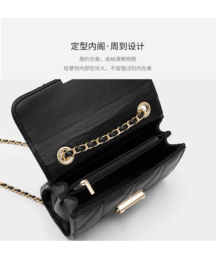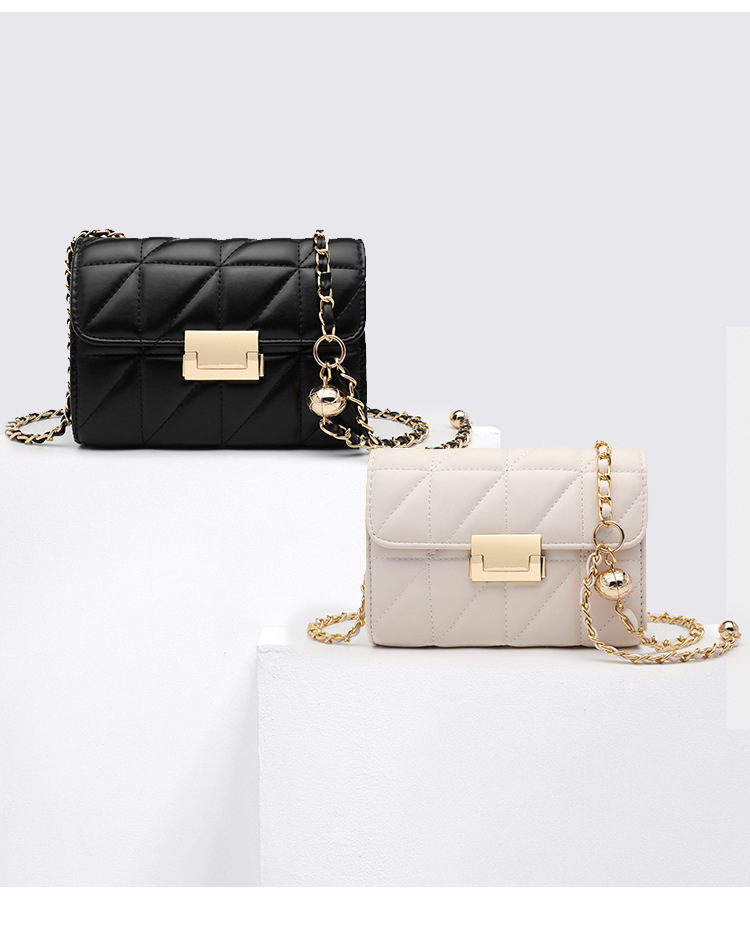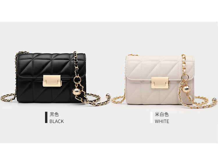 Small square bag sweet diagonal chain bag Size: 20.5*8*14CM Material: PU+Check Packing: OPP bag Color: black, white Box gauge: 60*70*80CMCM QTY:50PCS