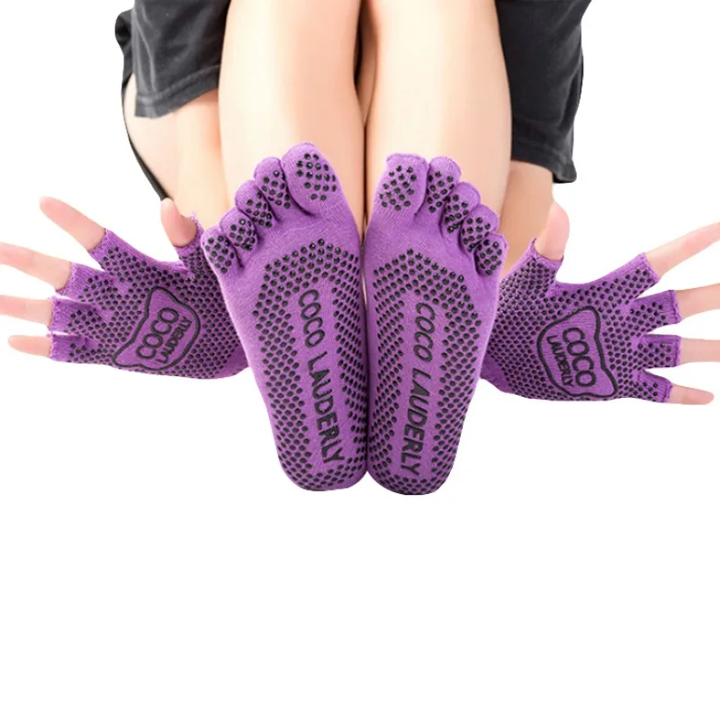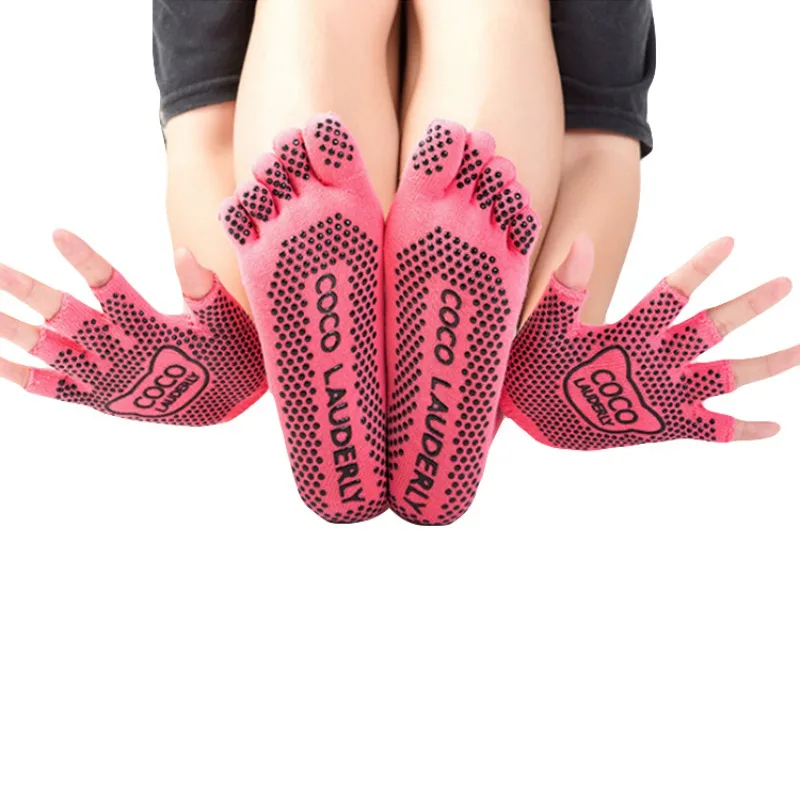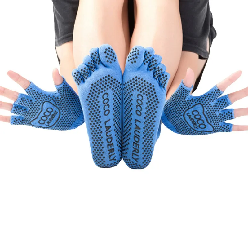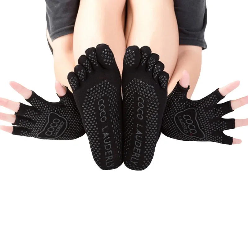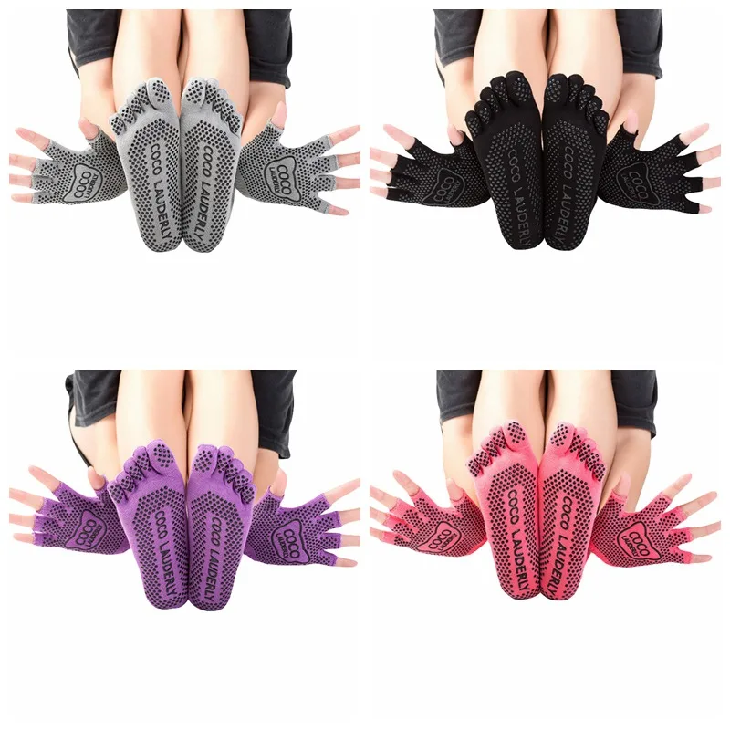 Yoga Five Finger Toe Socks Sport Socks Women Non-slip Yoga Toe Socks&Gloves Set Full Finger Socks Sport Dancing Pilates Socks