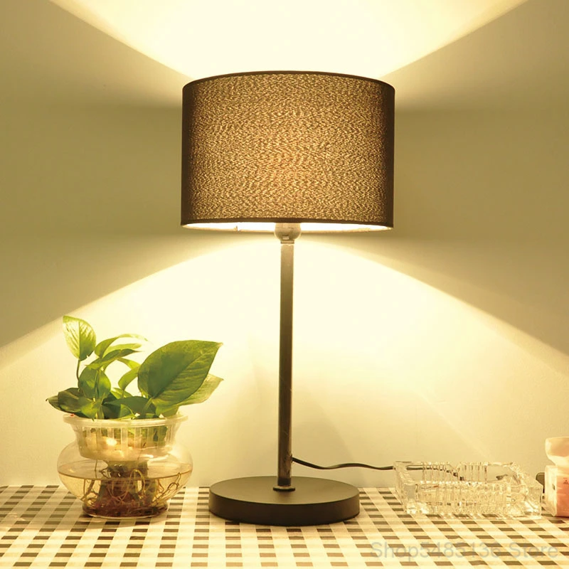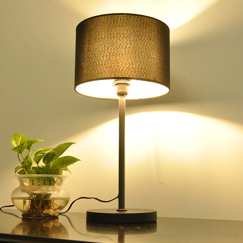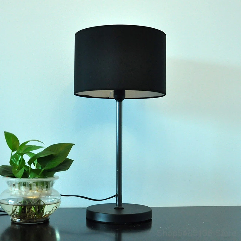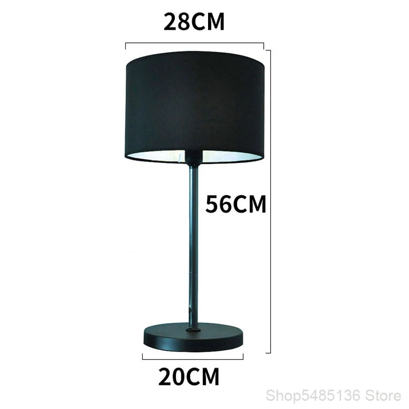 Bedroom bedside table lamp Size: diameter 28CM high 56CM Material: Iron + Fabric Voltage: 220V Power: 40W Packaging cartons Table lamp black pole black cover + send 9W remote control dimming color