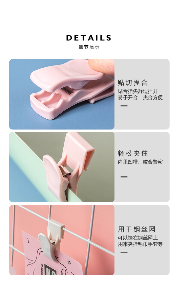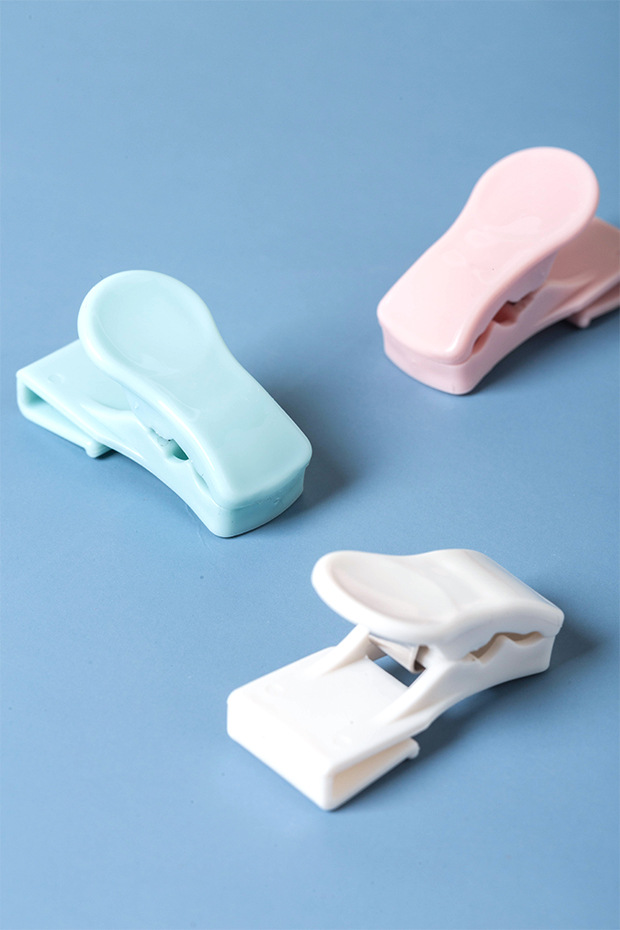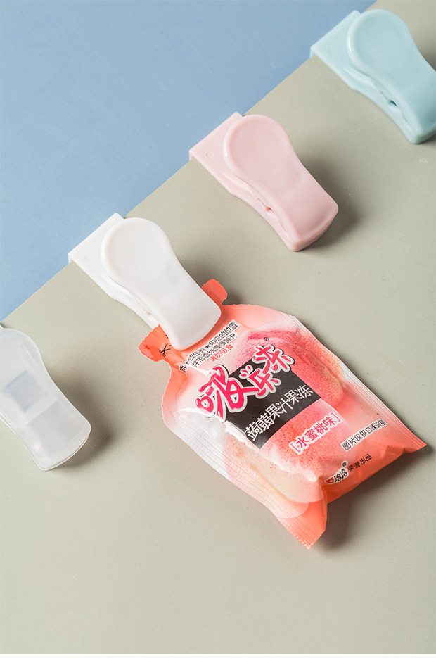 Sealing clip 4 packages, size: 30x55x30mm, color: White, transparent, pink, blue, material: ABS+ iron, packaging: paper card OPP