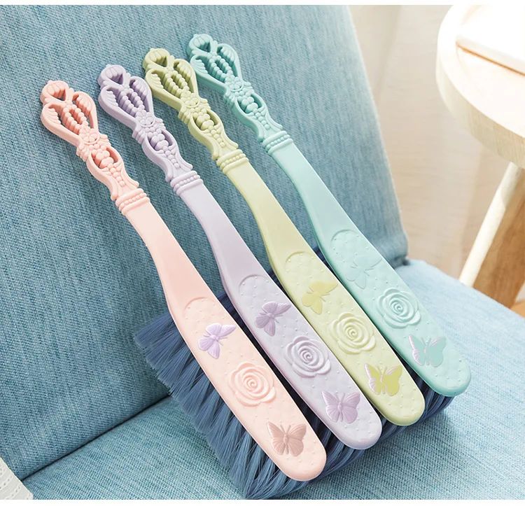 Beautiful Carved Long Handle Sweeping Brush Sofa Dusting Bed Wooden Carpet Cleaning Brush Blue Green Pink Purple
