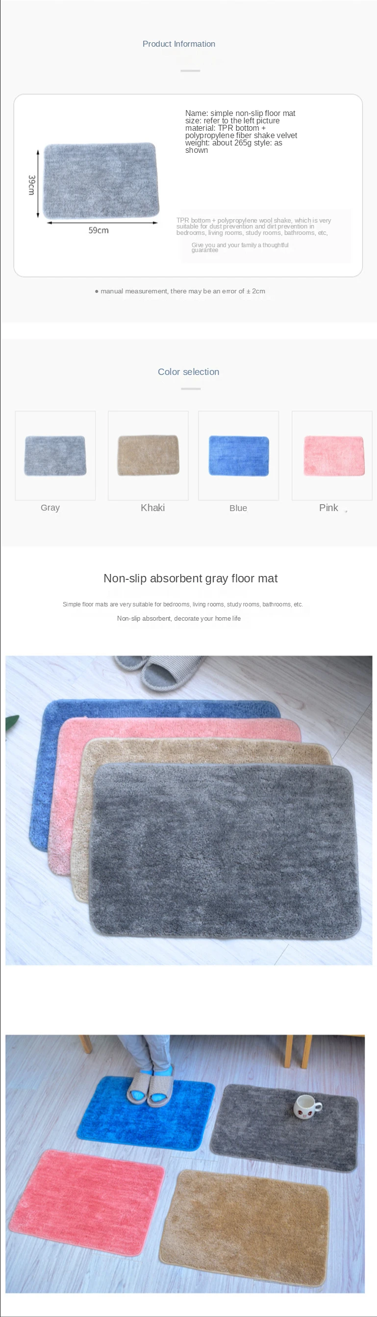 Carpet Simple Plain Floor Mat Cake Velvet Water Absorbent Bathroom Floor Mat Door Mat Foot Mat Household Carpet Plush Blanket