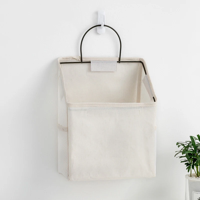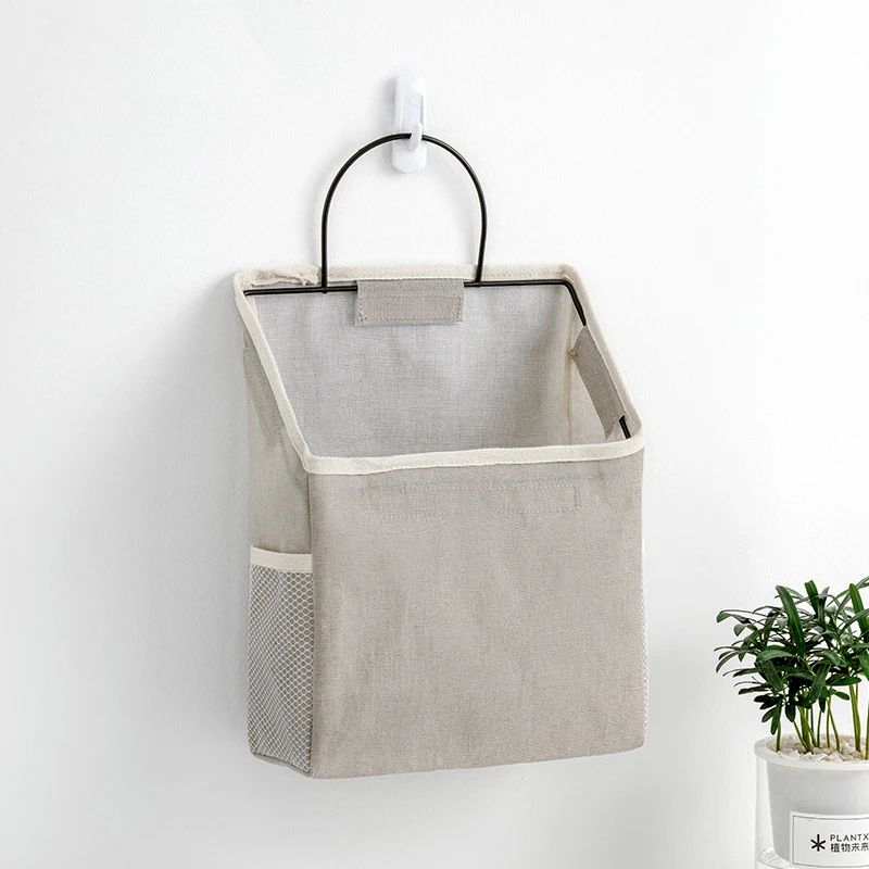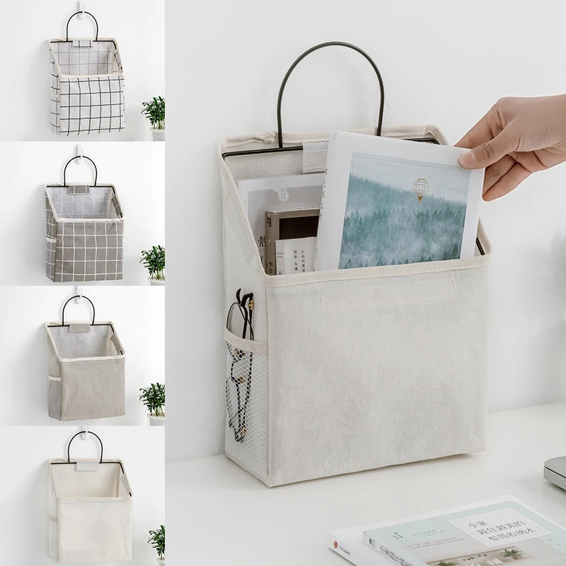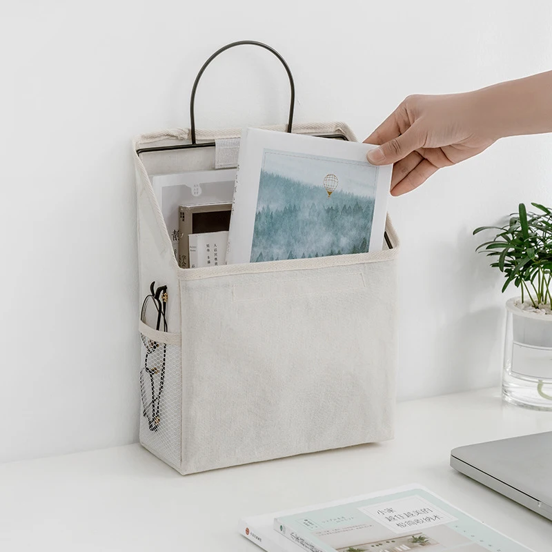 Cotton Linen Wall-mounted Storage Bag Wall Hanging Bedside Storage Organizer Book Magazine Mobile Phone Holder Storage Bag