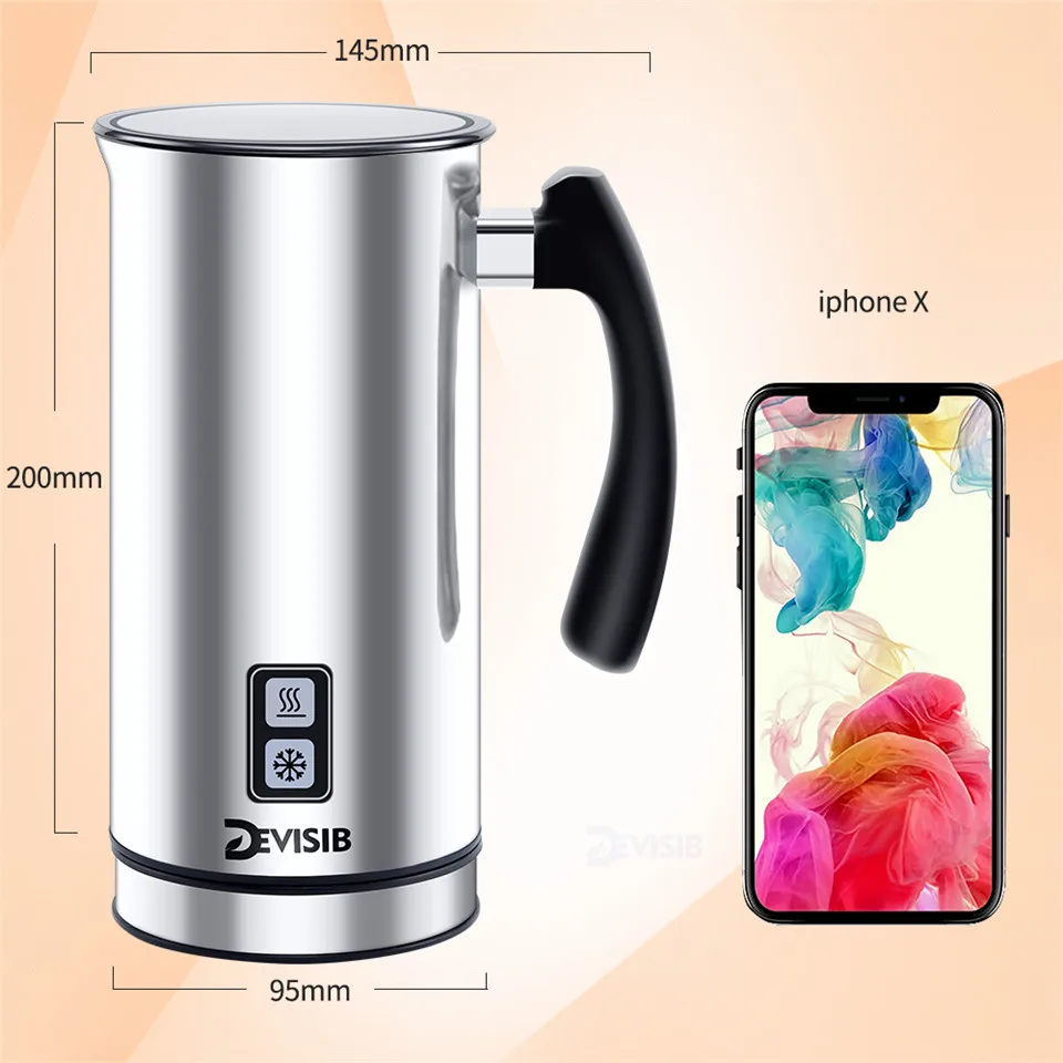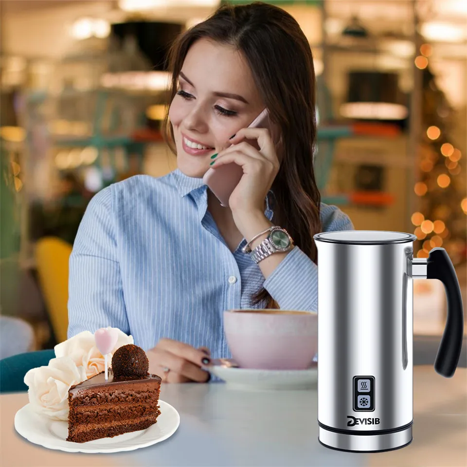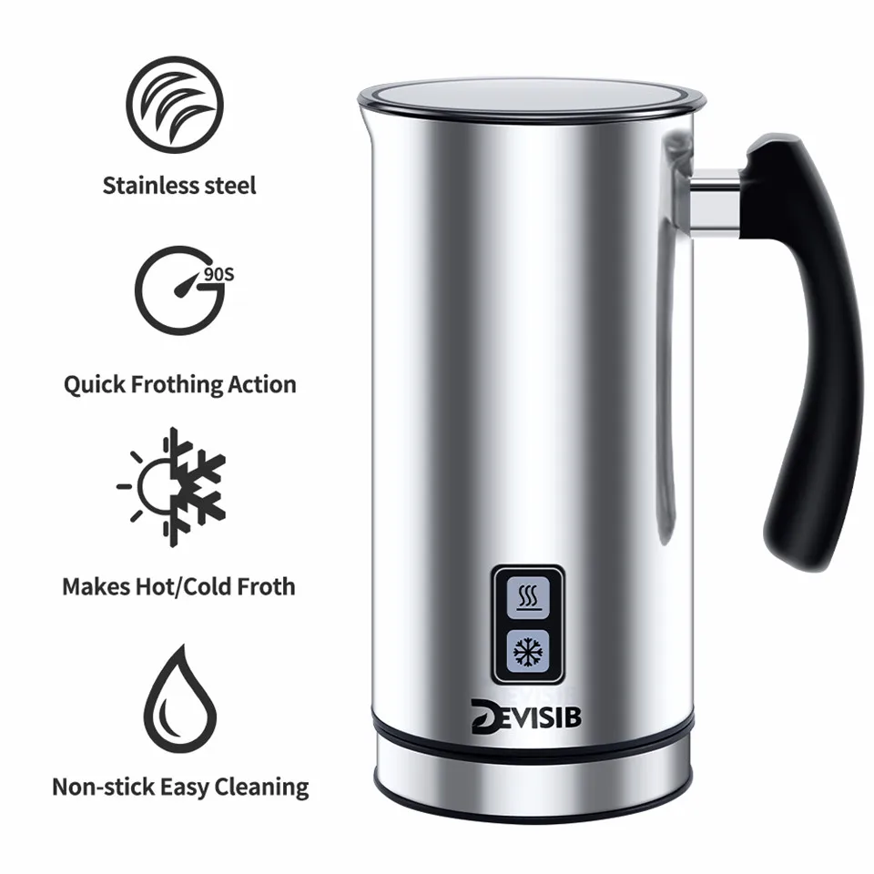 DEVISIB Automatic Milk Frother Milk Steamer Electric Frother for Soft Foam Hot Cold and Warmer for Coffee, Creamer Milk Heater 1 Year Warranty Including.