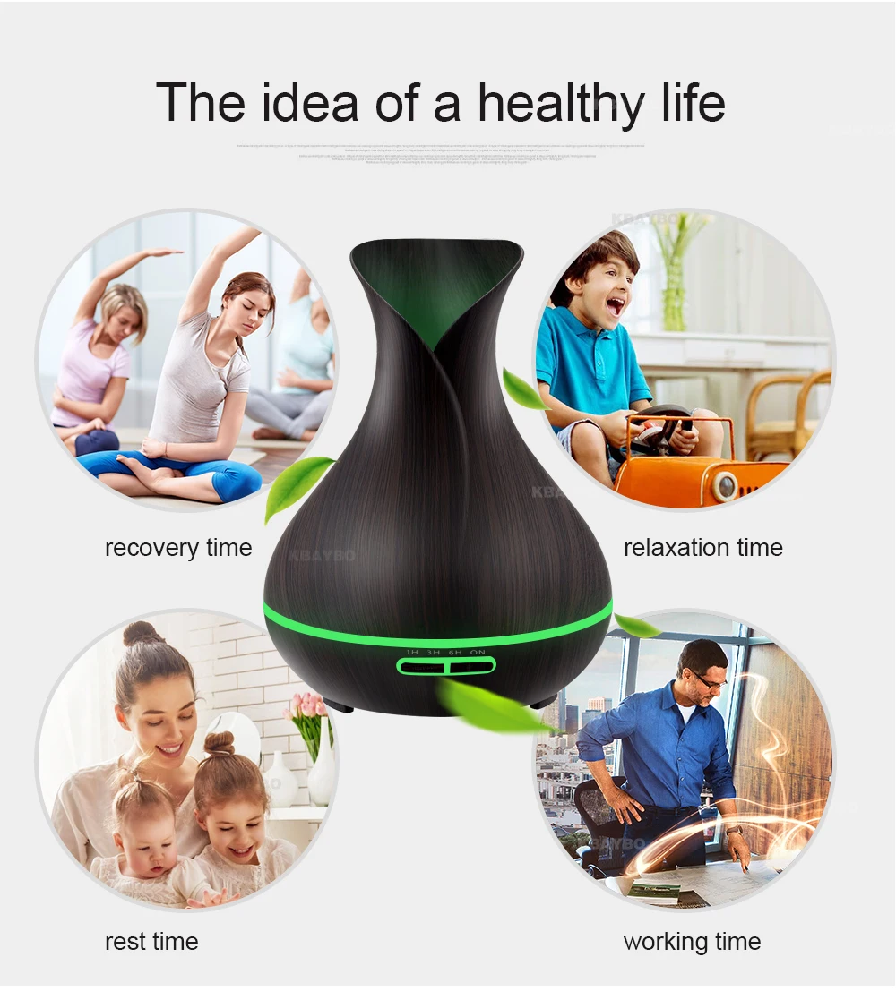 400ml Aroma Essential Oil Diffuser Ultrasonic Air Humidifier with Wood Grain electric LED Lights aroma diffuser for home