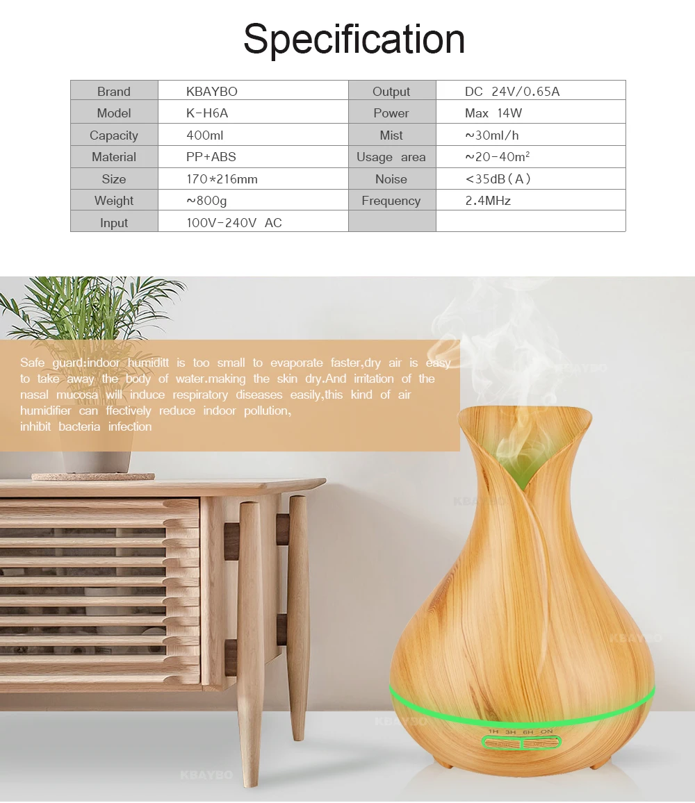 400ml Aroma Essential Oil Diffuser Ultrasonic Air Humidifier with Wood Grain electric LED Lights aroma diffuser for home