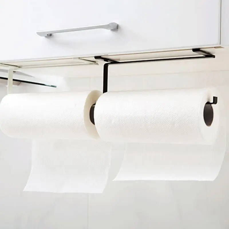 Cabinet wrought iron multi-purpose roll holder, wrought iron spray paint, not easy to rust, use the partition to accommodate roll paper, cling film, rag, etc., saving space. Lightly hangs, beautiful and practical.