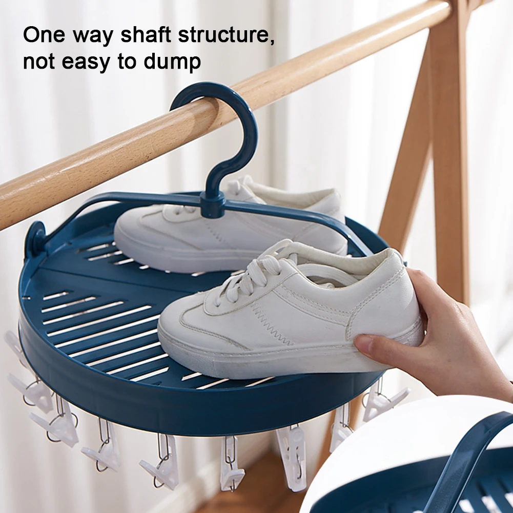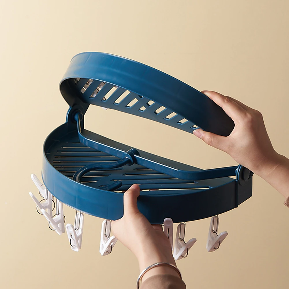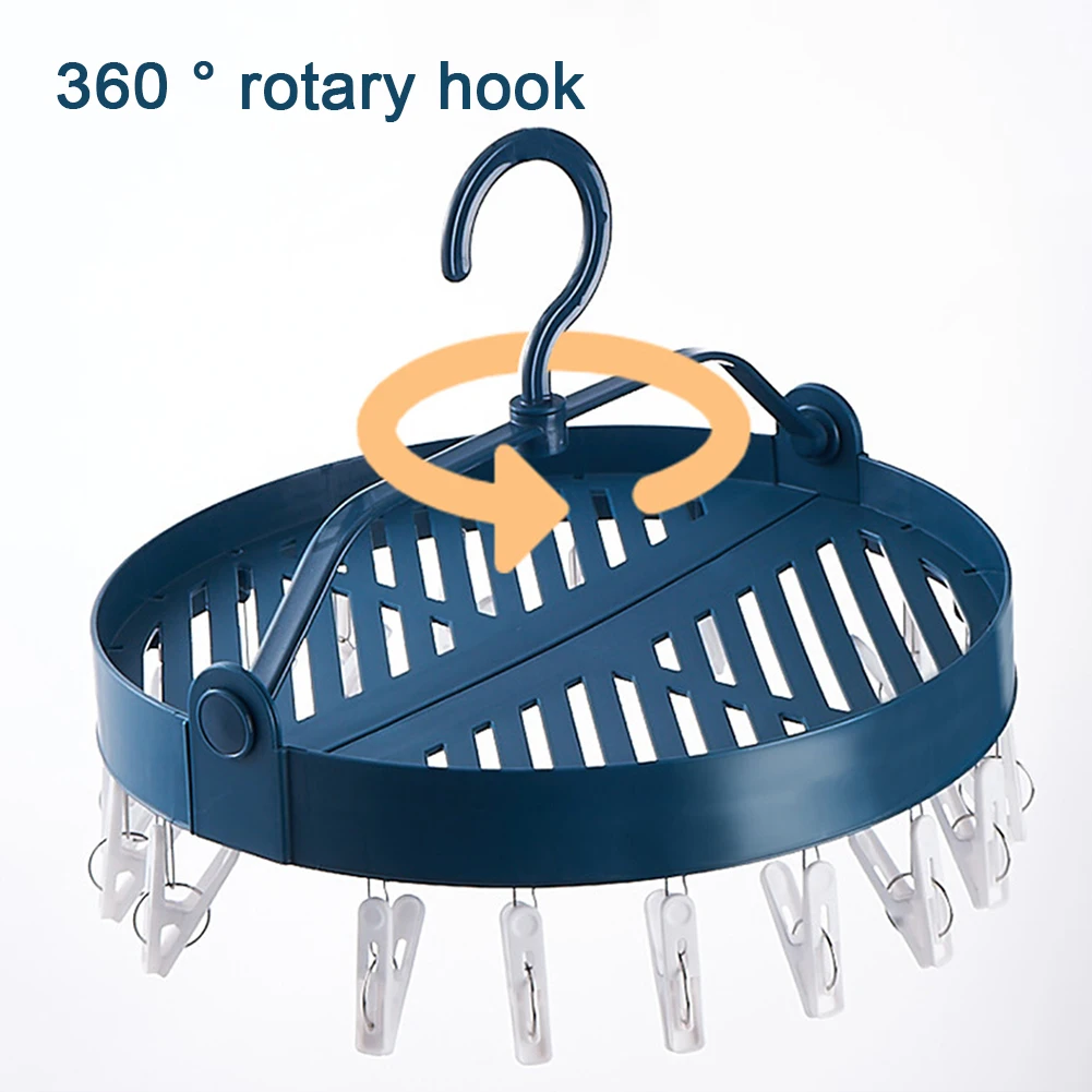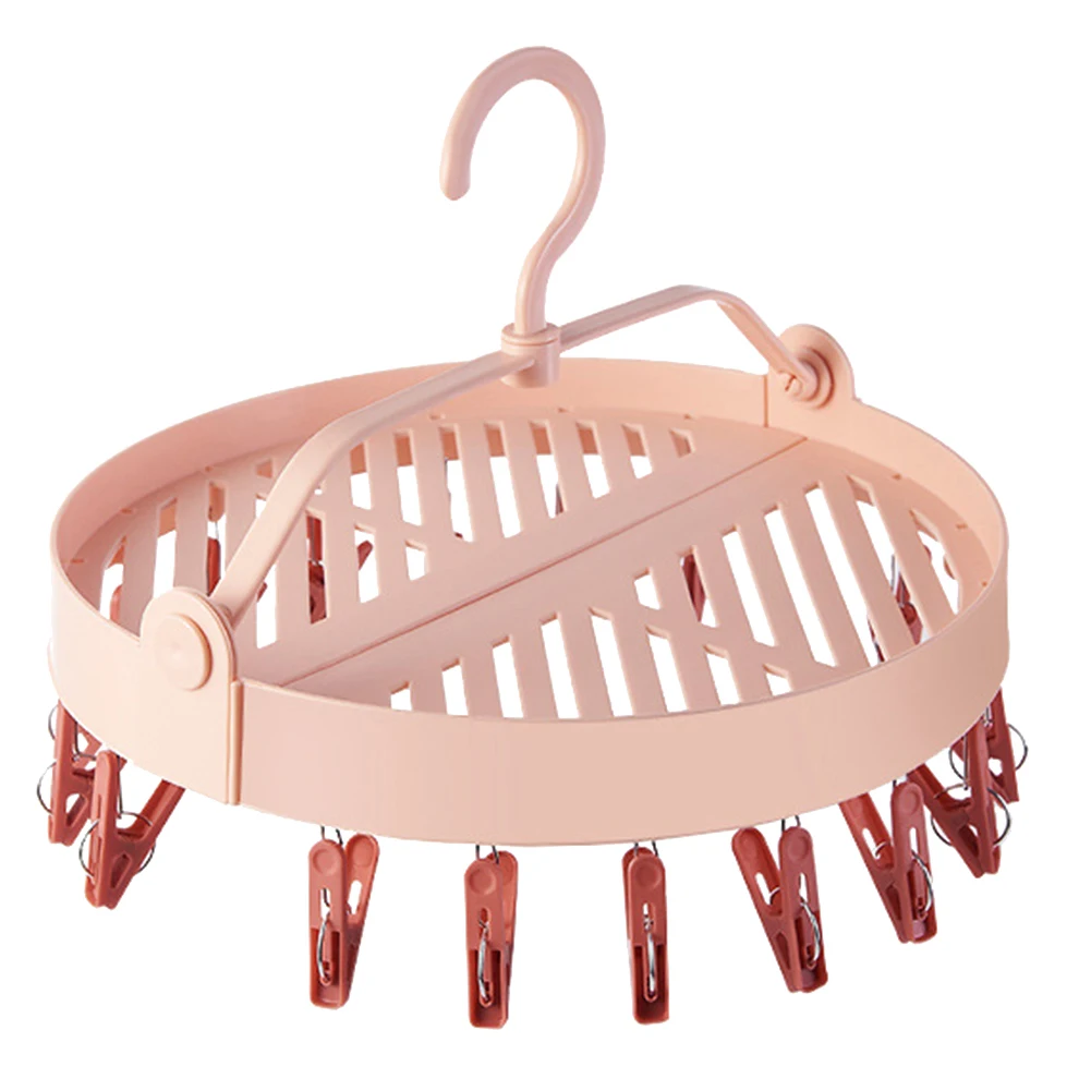 Round Foldable Clothespin Rack Socks Underwear Clothes Clips Hanger Organizer