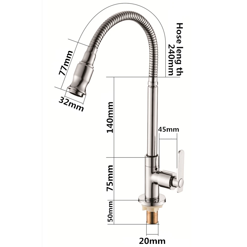 Product Name:Solid Brass 360 Degree Rotation Chrome Finish Single Cold Kitchen Faucet Deck Mounted Single Handle Water Tap Torneira