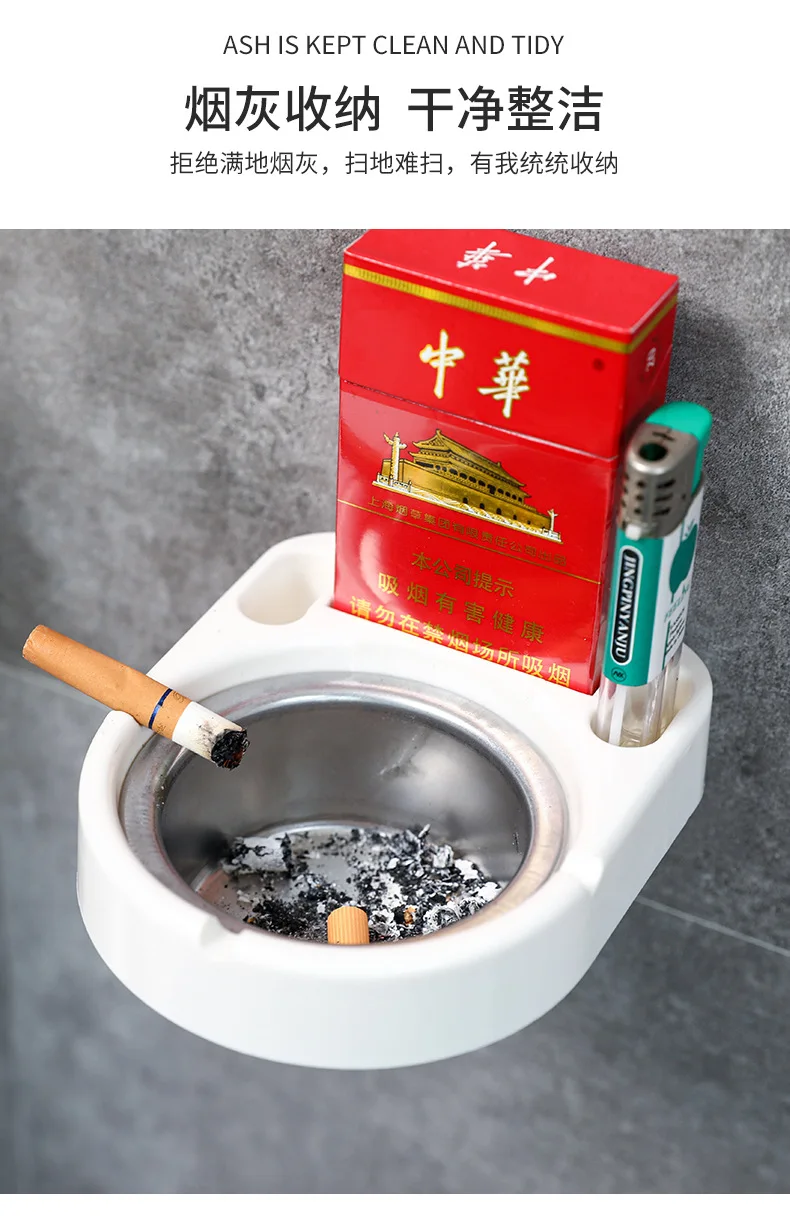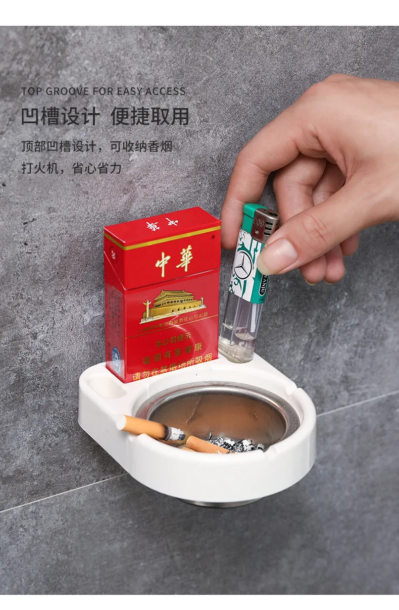 Wall Mounted Detachable Ashtray with Cigarettes Shelf Waterproof No Drilling Self-adhesive Ash Tray for Bathroom