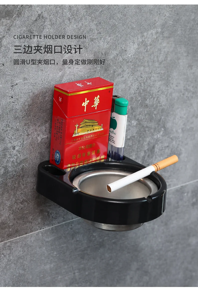 Wall Mounted Detachable Ashtray with Cigarettes Shelf