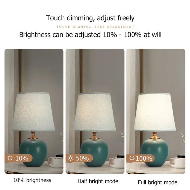 Touch Dimmer Table Lamp Contemporary Ceramic Desk Light Decorative for Home Bedroom