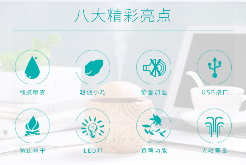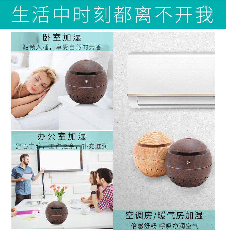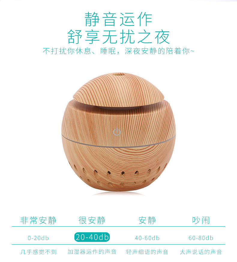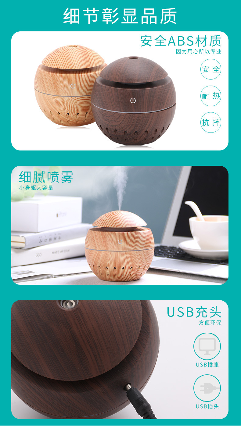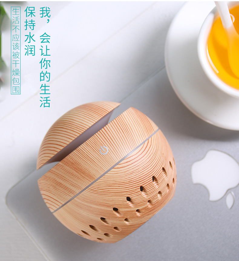 130ml aroma diffuser hollow Size: 100*105MM Power supply: 5V Power: 2W Water capacity: 130ML Material: ABS Packing: Kraft paper box Color: dark, light