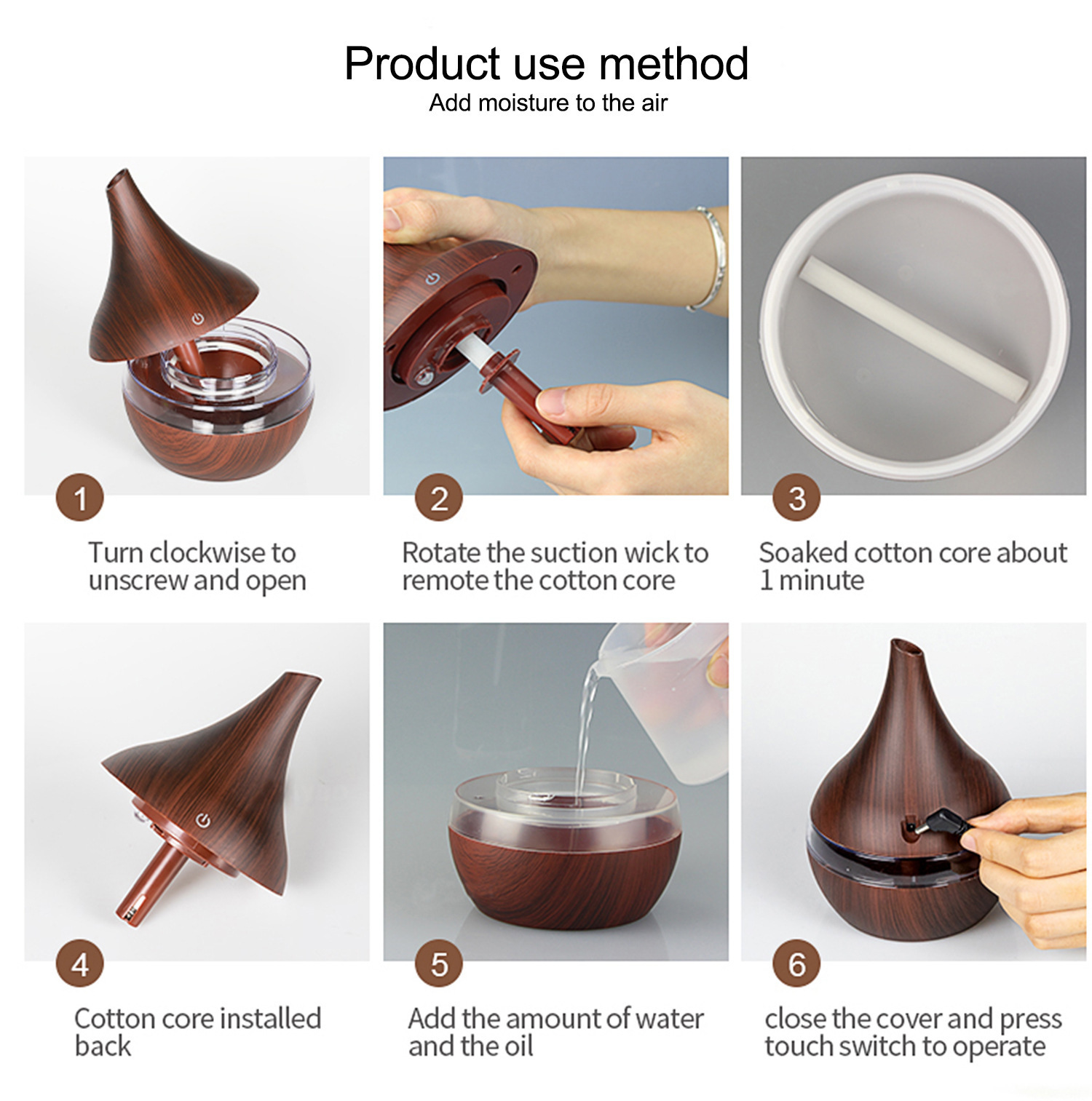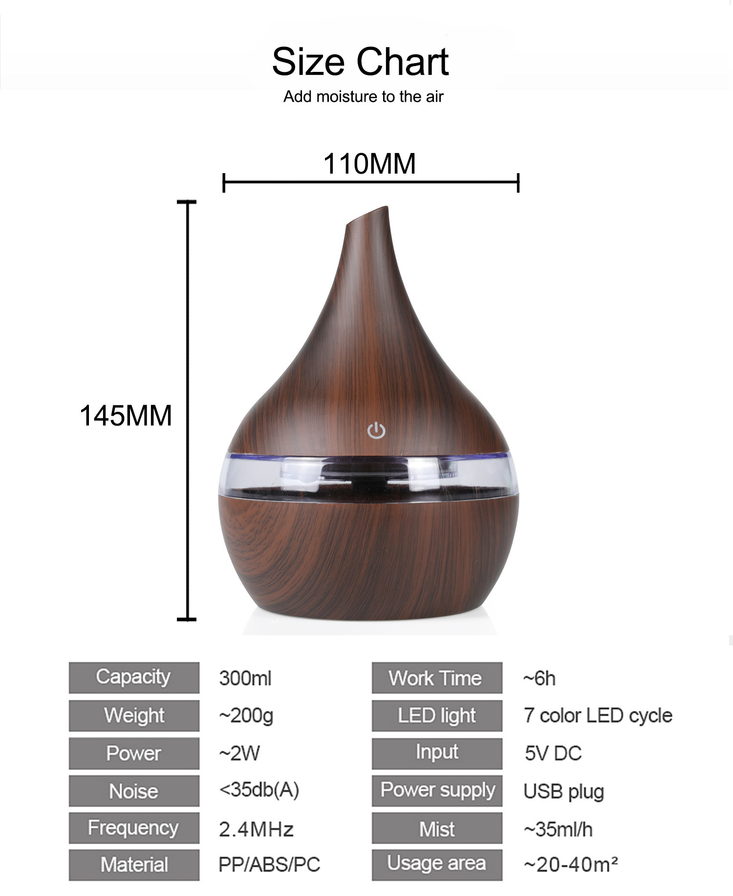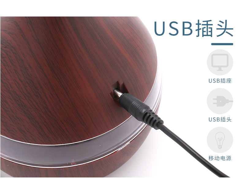 Colorful aroma diffuser usb humidifier Size: 110*147mm Capacity: 300ml Power: 2w Power supply mode: UBS Packing: Kraft paper box Carton specifications: 590*480*530mm QTY: 60PCS