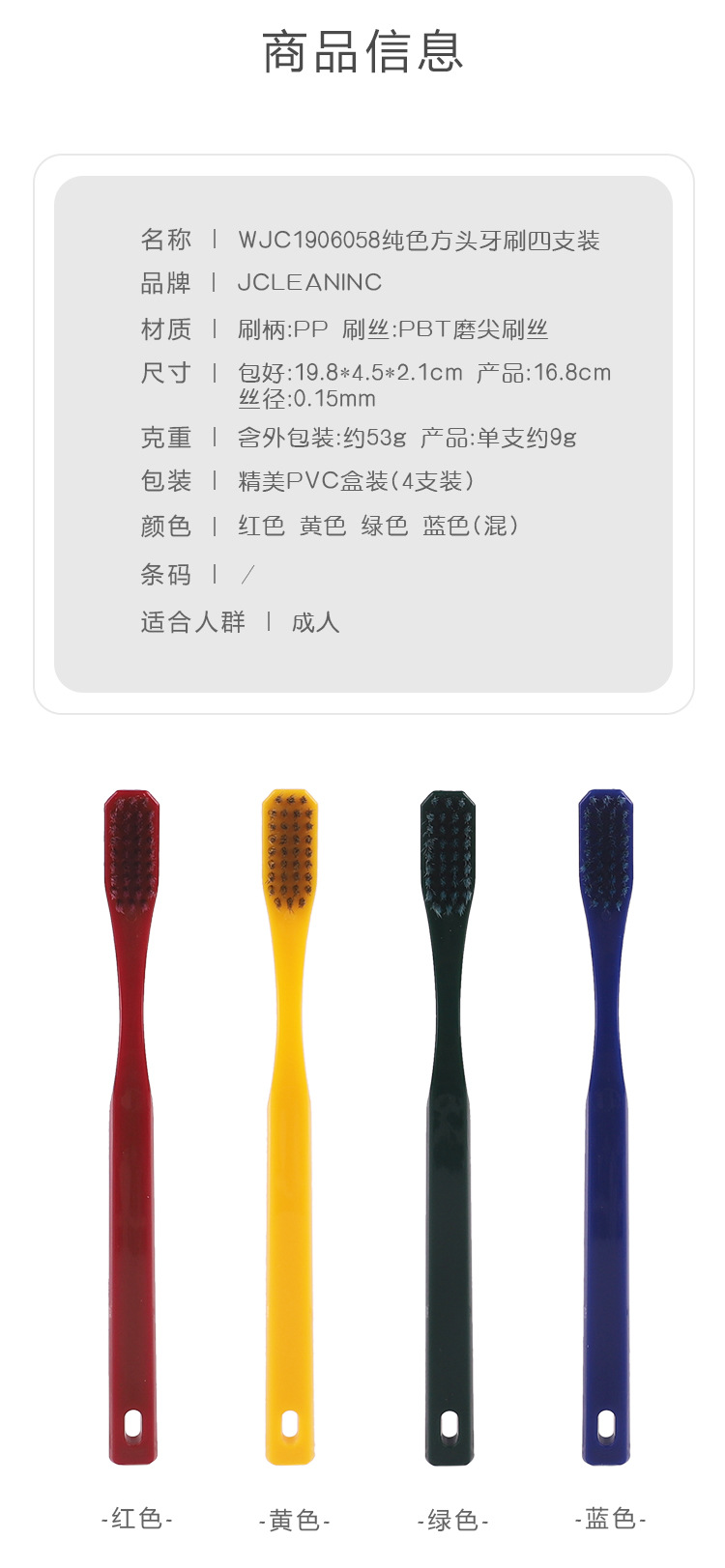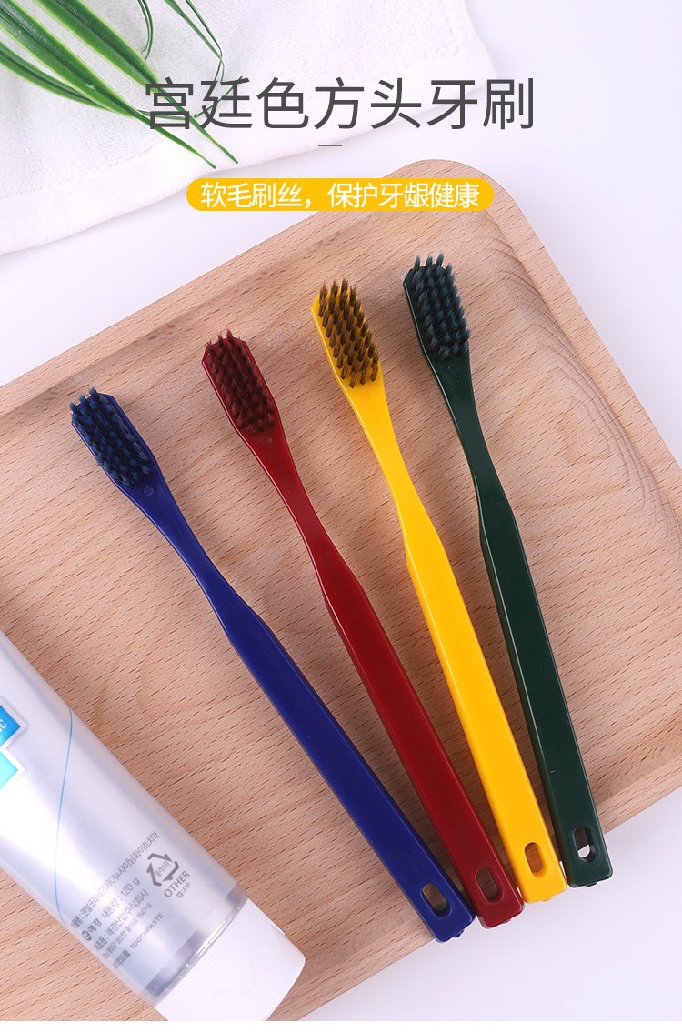 Solid color square head adult soft bristles toothbrush Size: 16.8*3CM Material: soft wool PBT/PP/TPR Packing: PVC boxed Color: mixed color