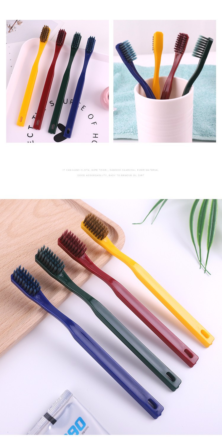 4 toothbrushes with bamboo charcoal Size: 18*3*2CM Material: pp + single-tip nylon brushed wire Packing: PVC box Color: Nordic powder, Nordic rice, Nordic blue, Nordic green